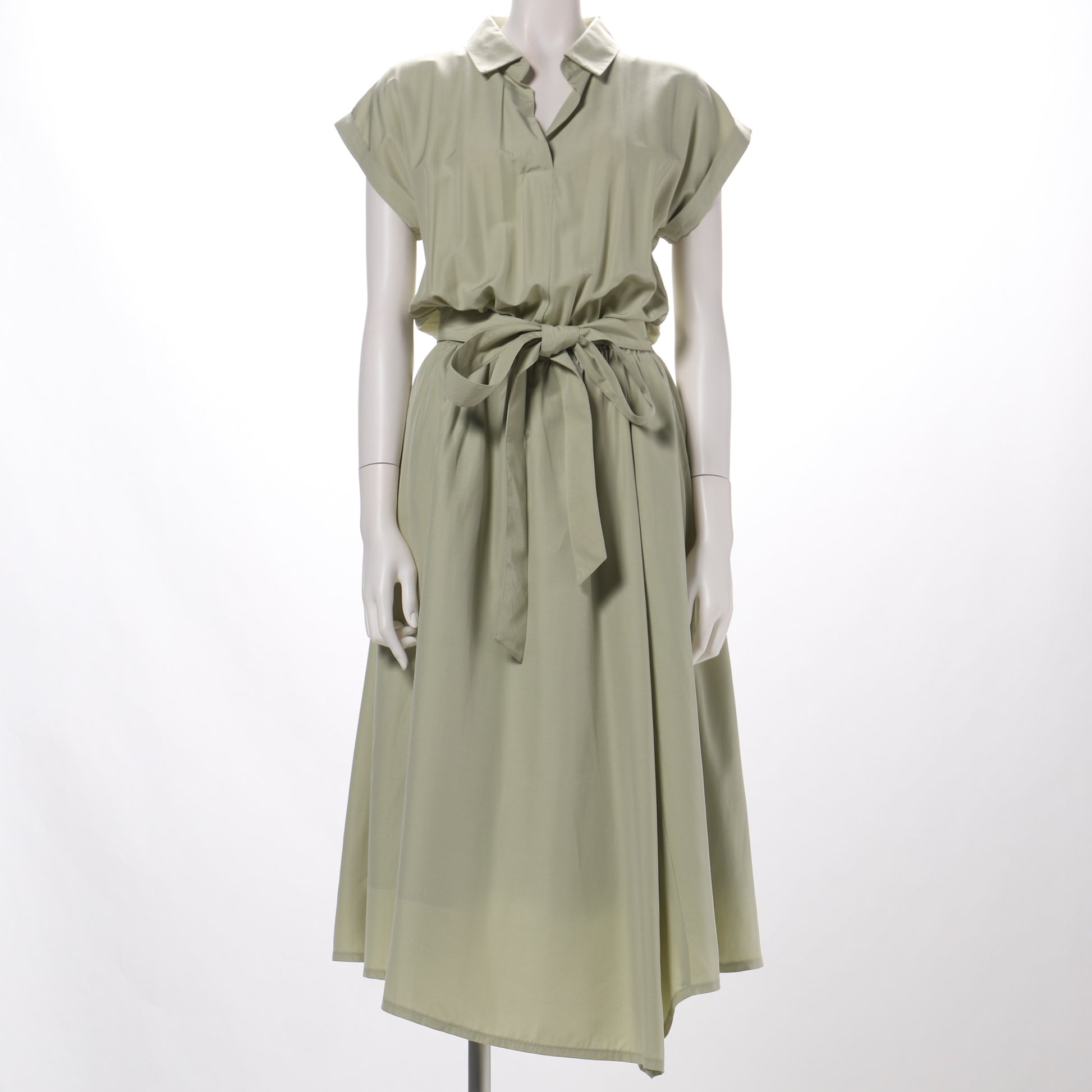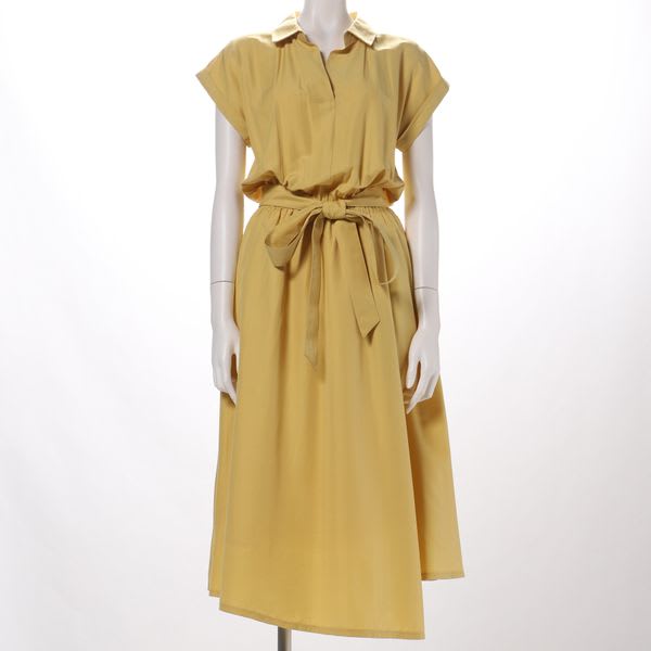 ウエストリボン付きのスキッパーネックワンピースです。スニーカーを合わせてカジュアルMIXスタイルに、ヒールパンプスを合わせて上品なスタイルも素敵ですね。
