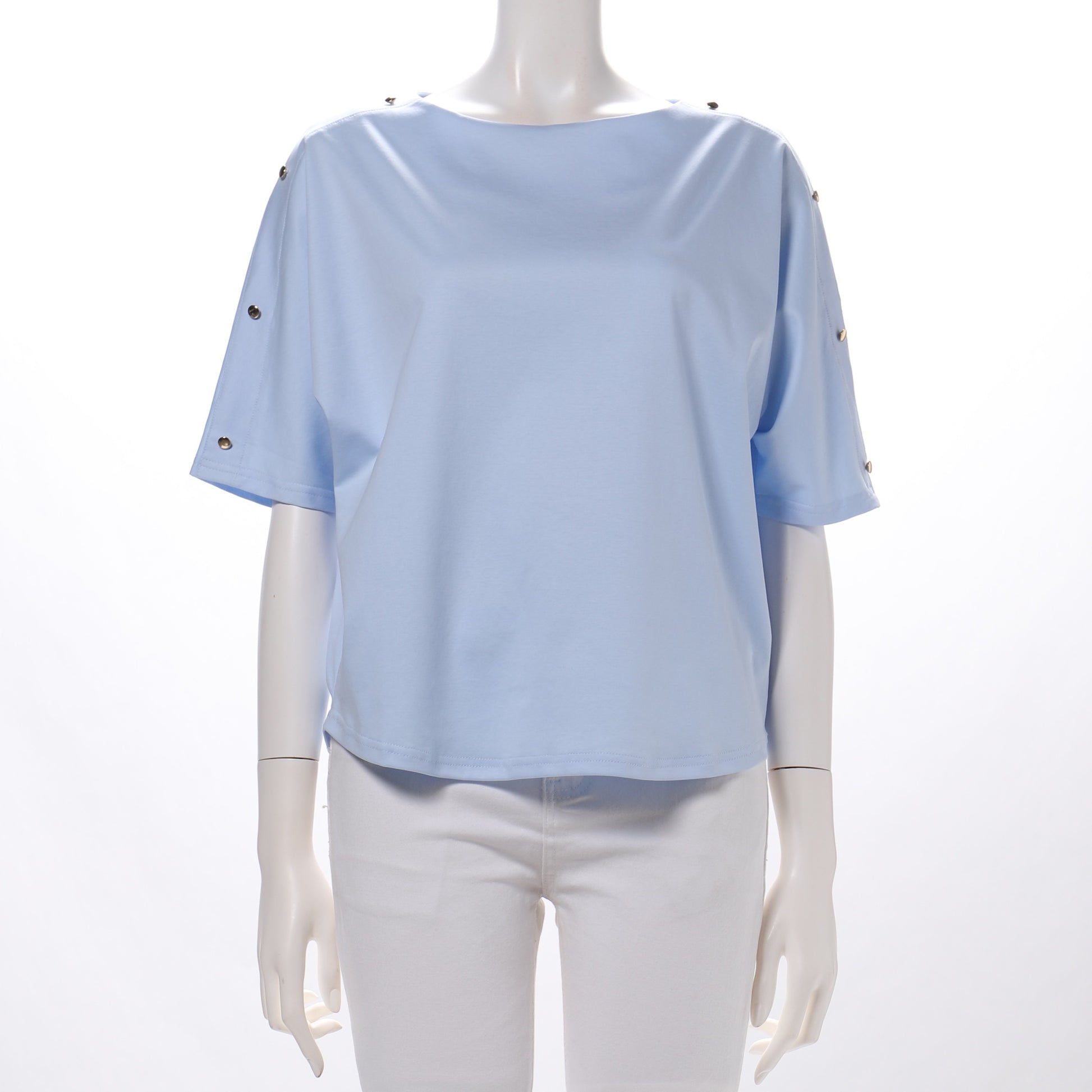 お袖のゴールドボタンがポイントのドルマンスリーブカットソーです。テーパードパンツとパンプスを合わせてキレイめスタイルや、ロングギャザースカートとスニーカーを合わせてカジュアルなスタイルもいいですね。