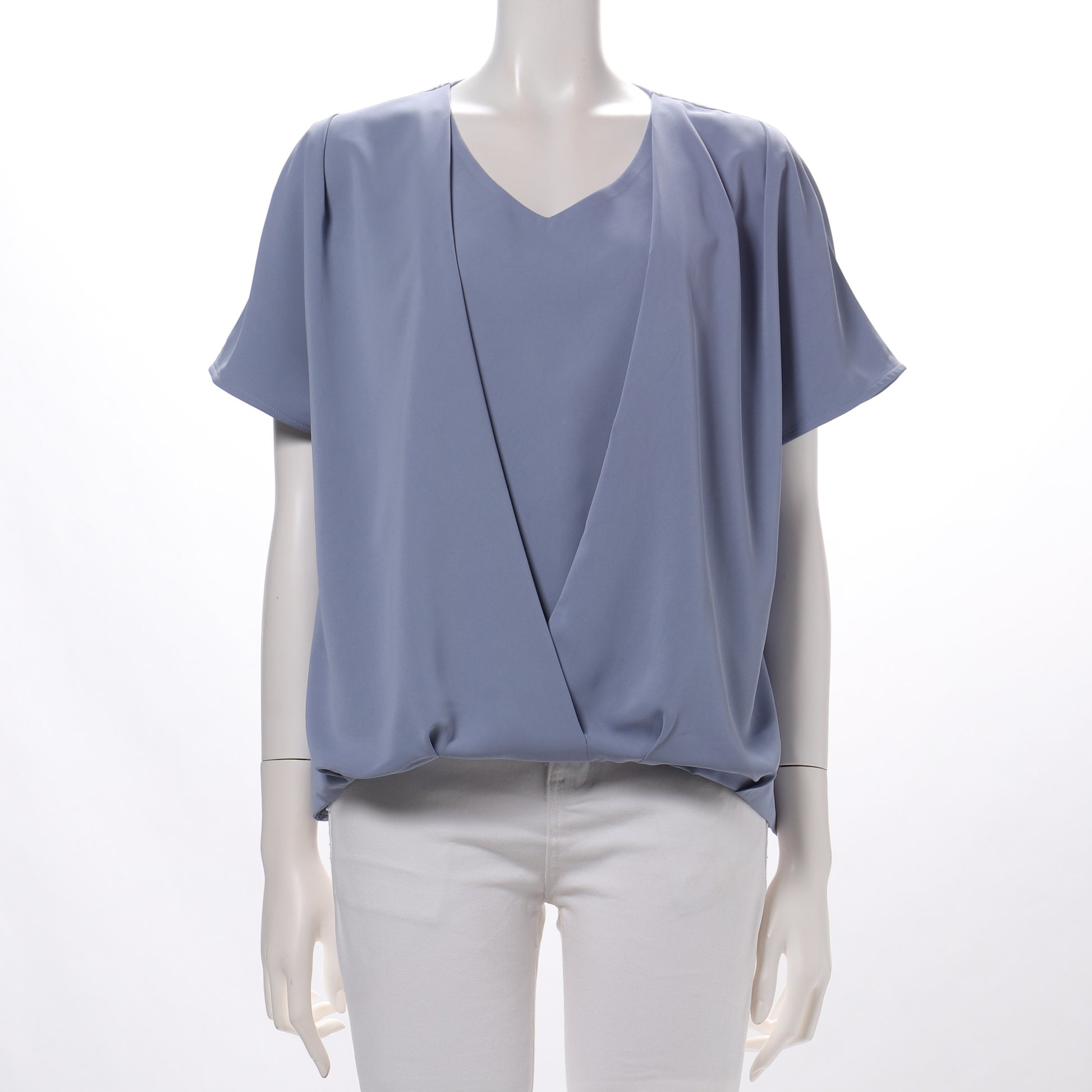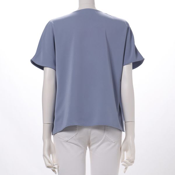 裾タックやカシュクールデザインがポイントのVネックブラウスです。ワイドパンツとスニーカーを合わせてカジュアルなスタイルや、タイトスカートとパンプスを合わせてキレイめスタイルも素敵ですよ。