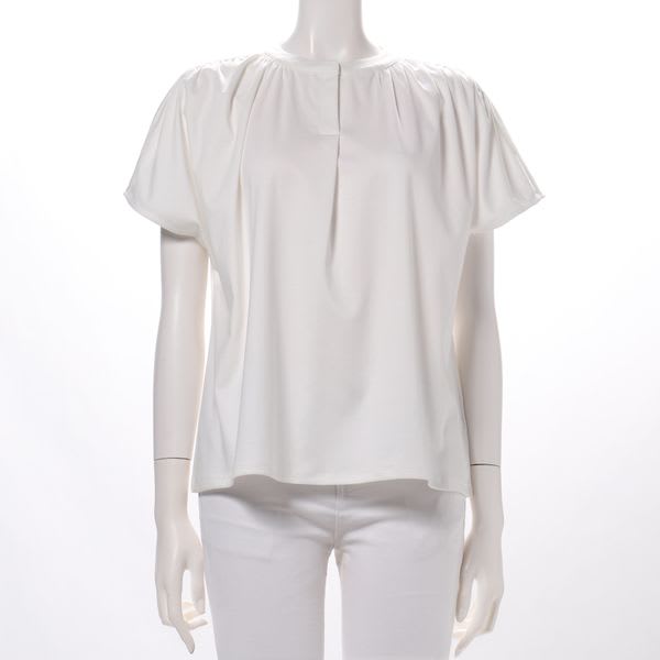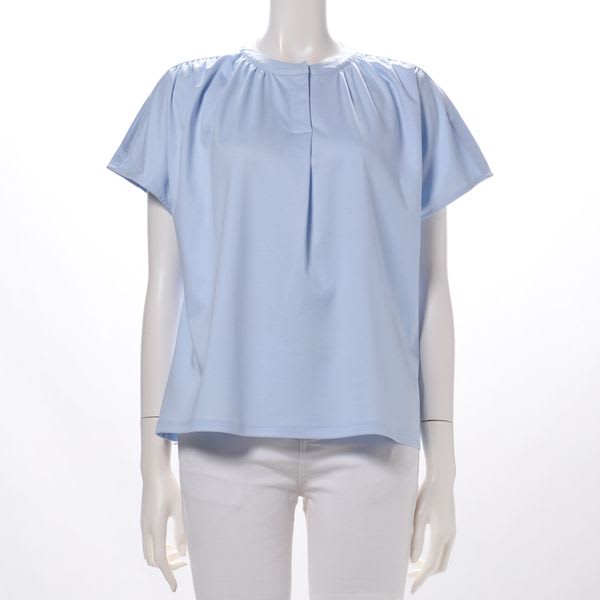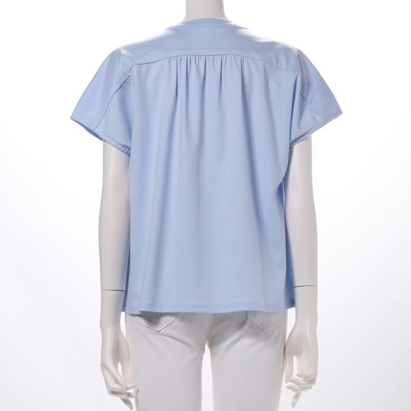 バックやネックラインから肩にかけてのギャザーがポイントのカットソーです。
