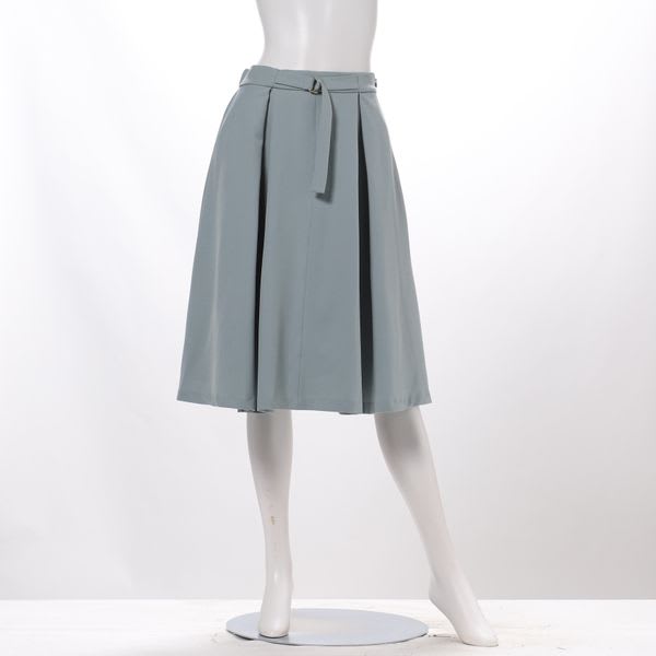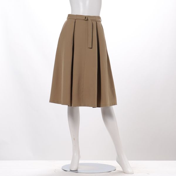 Dカンベルト付きのタックフレアスカート。とろみブラウスにパンプスを合わせてフェミニンに、コットンシャツにローファーを合わせてマニッシュに仕上げても良いですね。