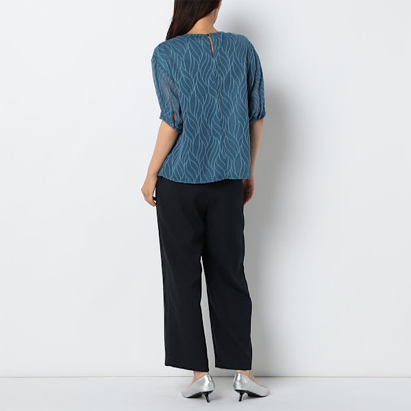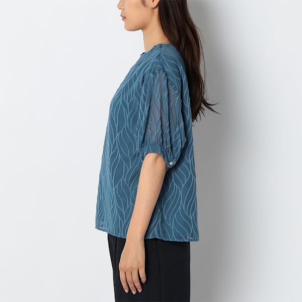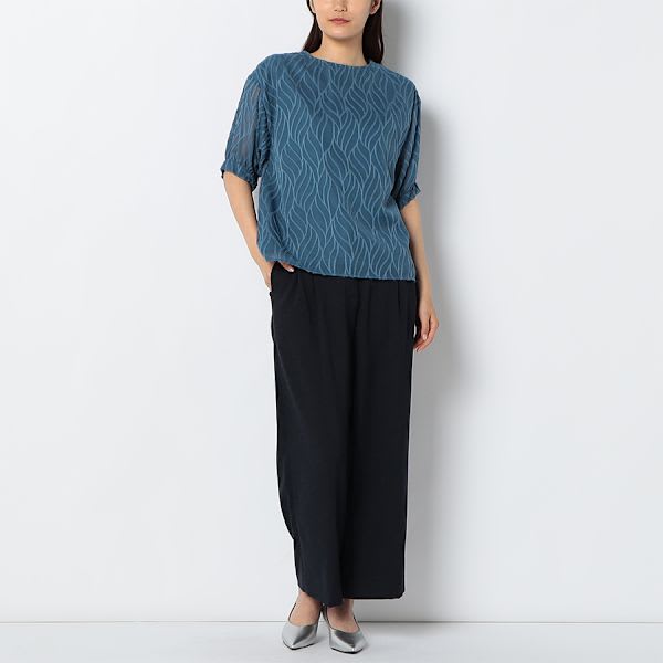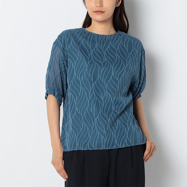 シアー素材クルーネックブラウス