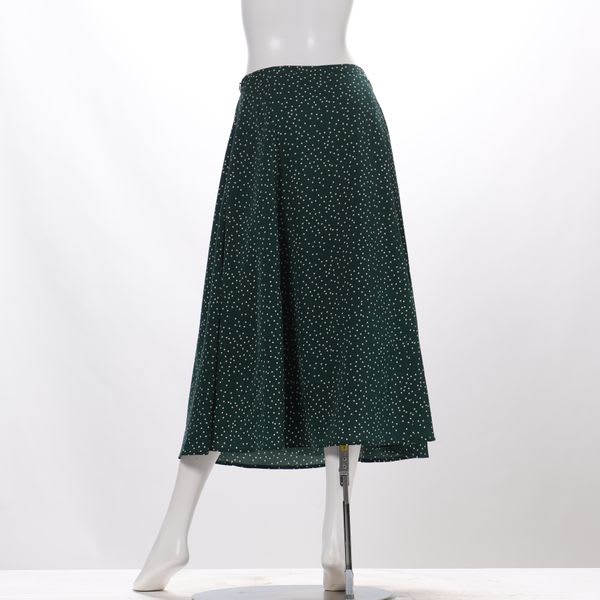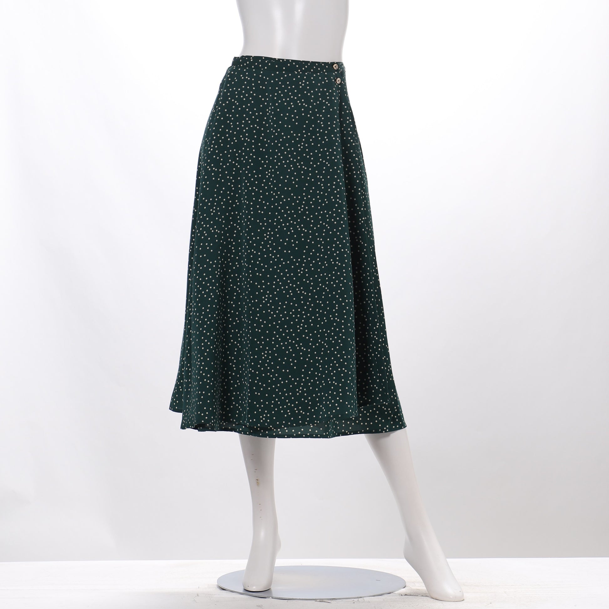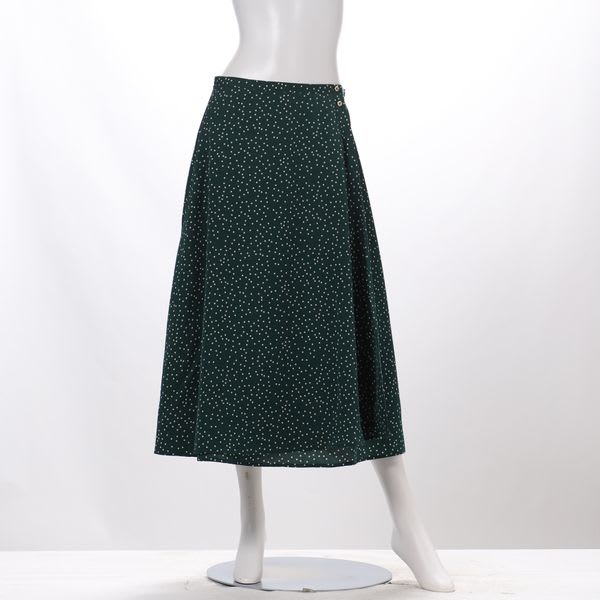 ラップ風デザインのドット柄スカート。とろみブラウスとヒールパンプスを合わせてレディライクなスタイルに、カットソーとスニーカーを合わせてカジュアルスタイルもいいですね◎