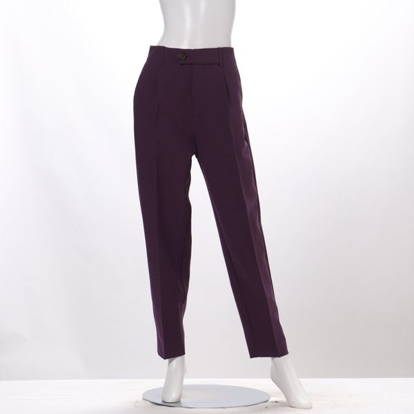 ウエストのマーブル釦がポイントのポケット付きテーパードパンツです。