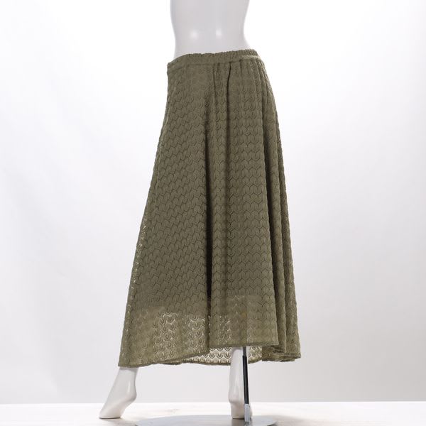 総レースのフレアスカート。とろみブラウスとヒールパンプスを合わせてレディライクなスタイルに、カットソーとスニーカーを合わせてカジュアルスタイルも素敵ですよ。