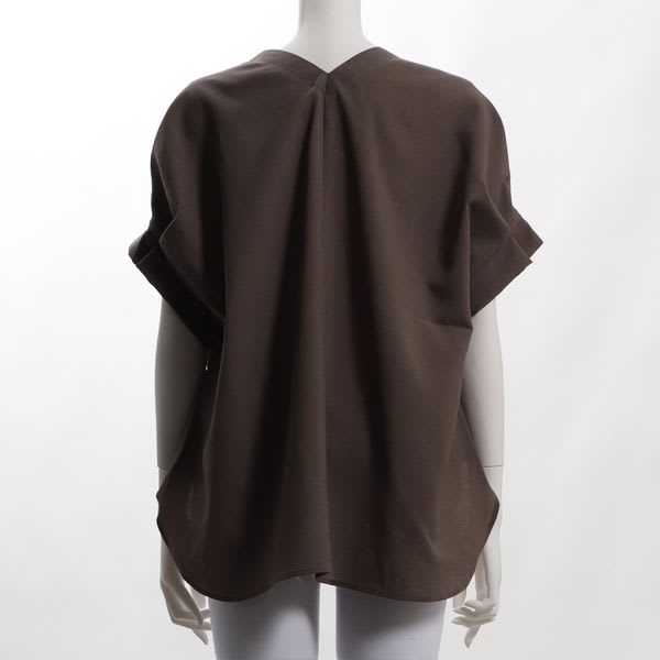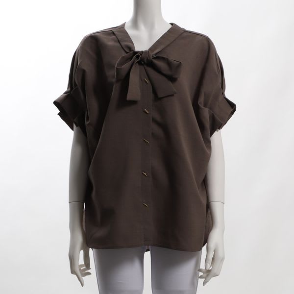 バーボタンと袖のタックがポイントのボウタイブラウス。前後2wayで着られるので、後ろにリボンを持ってきてもいいですね。テーパードパンツを合わせてきれいめカジュアルに着てもいいですし、ロングスカートを合わせてリラックス感を出しても素敵です!(バーボタンは装飾です。)