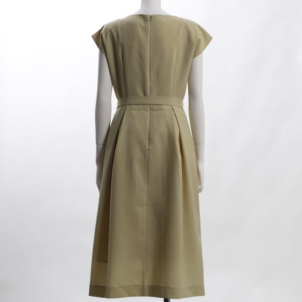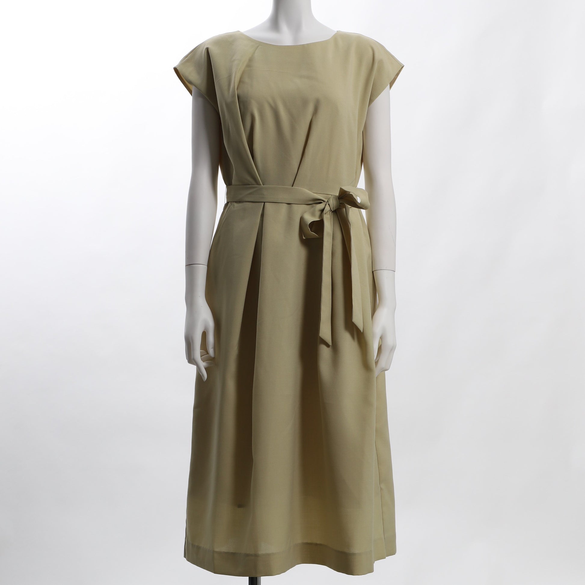 前後のタックとリボンベルト付きでシルエットのきれいなワンピース。プチネックレスとラウンドトゥパンプスを合わせて上品な着こなしに、Y字ネックレスとポインテッドトゥパンプスを合わせてスマートに着こなすのもおすすめですよ。