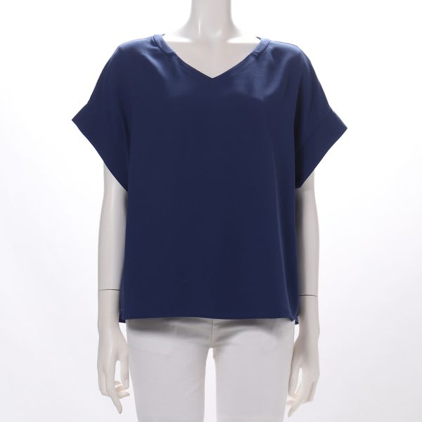 シンプルデザインのゆったりめVネックブラウスです。テーパードパンツを合わせてキレイめなオフィススタイルに、フレアスカートを合わせて大人可愛いコーデも◎ですよ。※エアークローゼット限定のお取り扱いサイズとなっております。
