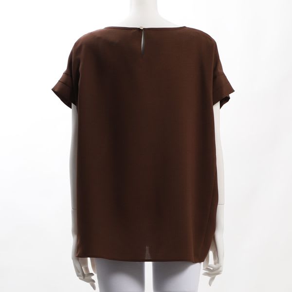 胸元のカットデザインがポイントのブラウスです。テーパードパンツに合わせてクールな印象に、タイトスカートを合わせてキチンと感のある女性らしいコーデも素敵ですよ。