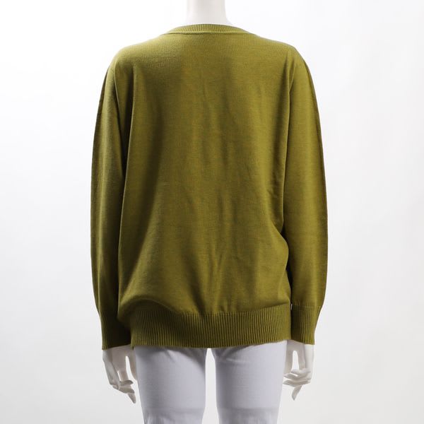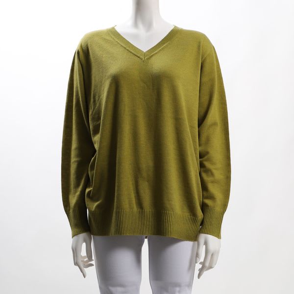 シンプルなデザインのVネックニット。フレアスカートとラウンドパンプスを合わせて女性らしいスタイルに、デニムパンツとスニーカーを合わせてカジュアルスタイルもいいですね◎