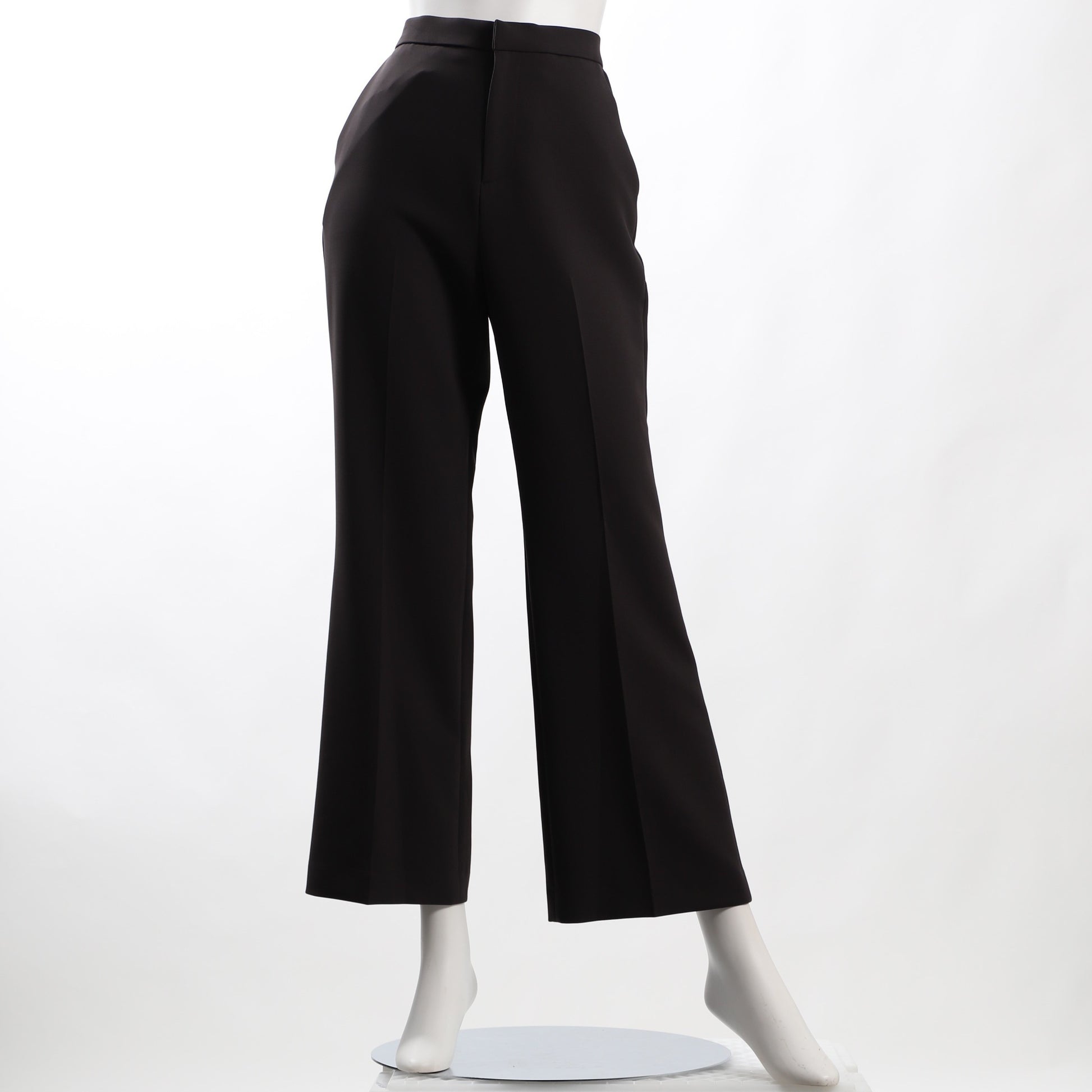 シンプルなデザインのフレアパンツ。ストライプ柄シャツとポインテッドトゥパンプスを合わせてスタイリッシュなスタイルに、カットソーとスニーカーを合わせてカジュアルスタイルも素敵ですよ◎