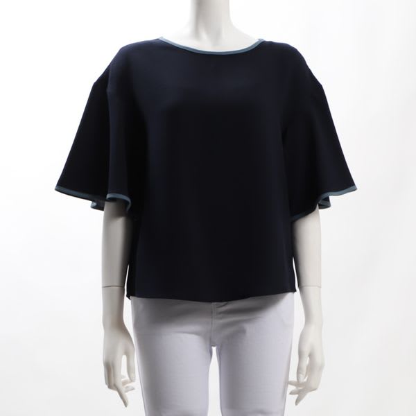首元とお袖のパイピングデザインが特徴的なフレアスリーブブラウスです。フレアスカートを合わせてエレガントな着こなしもいいですし、テーパードパンツを合わせてクールめな着こなしも素敵ですよ。