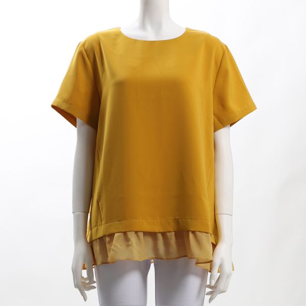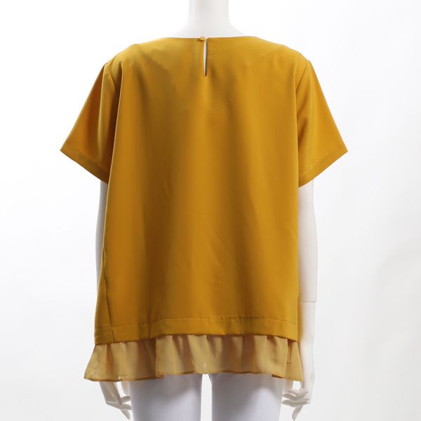裾異素材切り替えラウンドネックブラウス