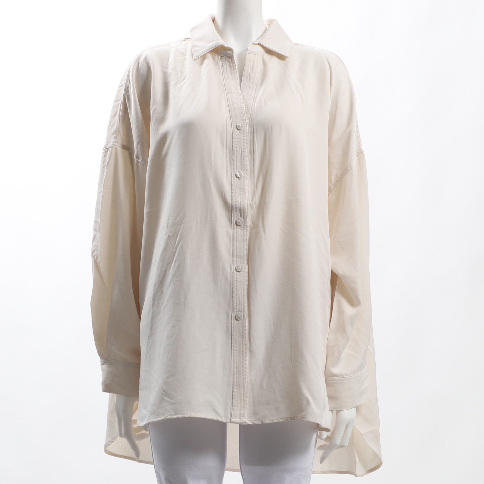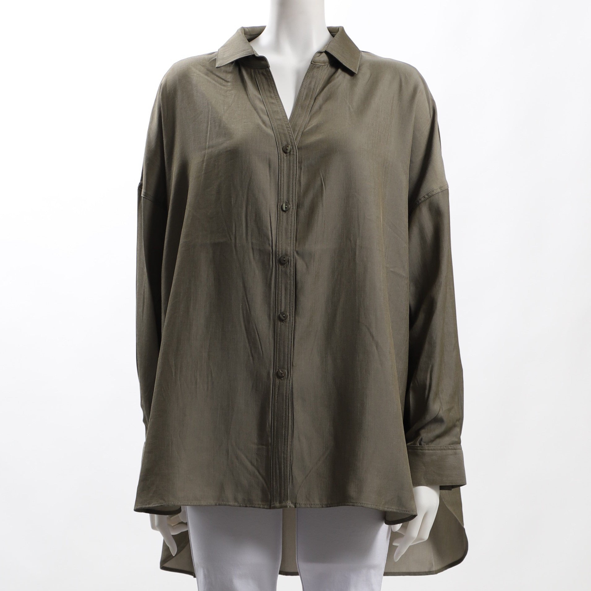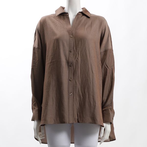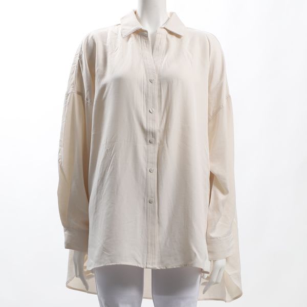 バックテールデザインのスキッパーシャツ。テーパードパンツとポインテッドトゥパンプスを合わせてクールなスタイルに、デニムパンツとスニーカーを合わせてカジュアルスタイルも素敵ですよ。