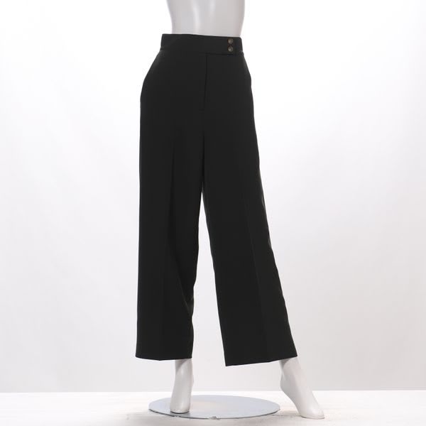 ウエストのボタンデザインがポイントのシンプルなワイドパンツです。ボウタイブラウスを合わせてきちんと感のある着こなしもいいですし、ローゲージニットを合わせてカジュアルダウンしたスタイルも素敵ですよ。