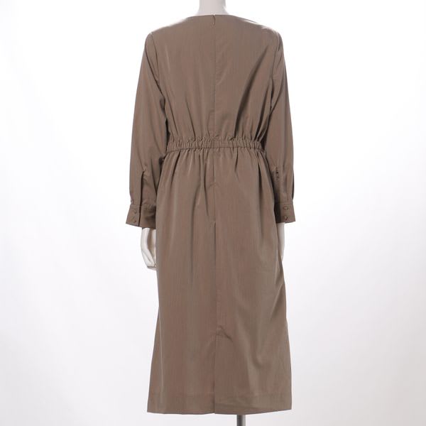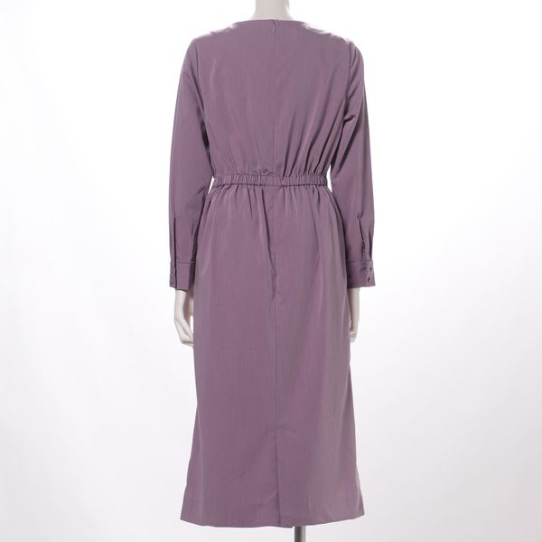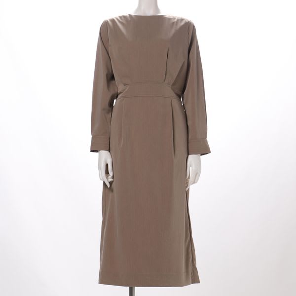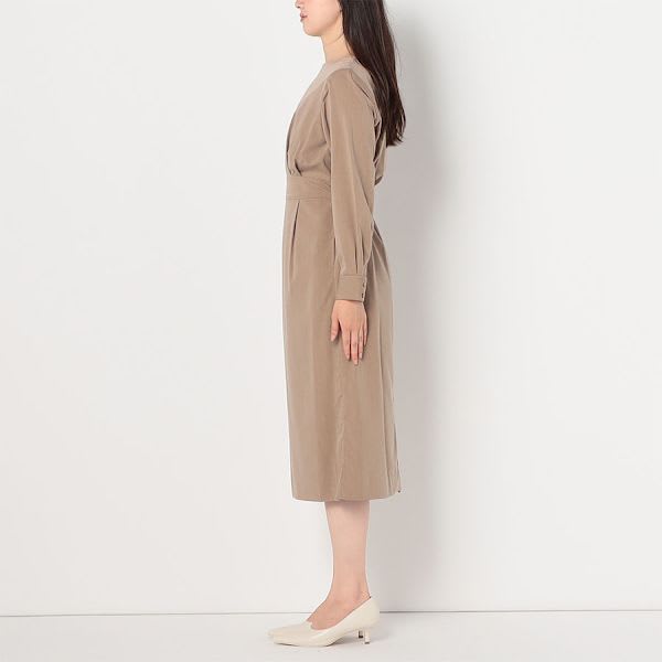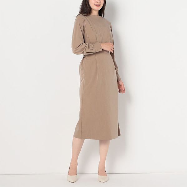 ウエストタックデザインのシンプルなワンピースです。レザーのハンドバッグとヒールパンプスを合わせて女性らしい着こなしもいいですし、チェーンバッグとショートブーツを合わせたこなれ感のある着こなしも素敵ですよ。
