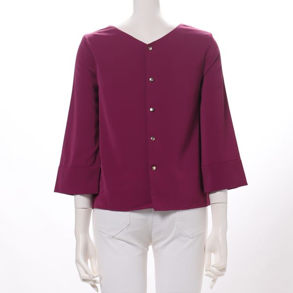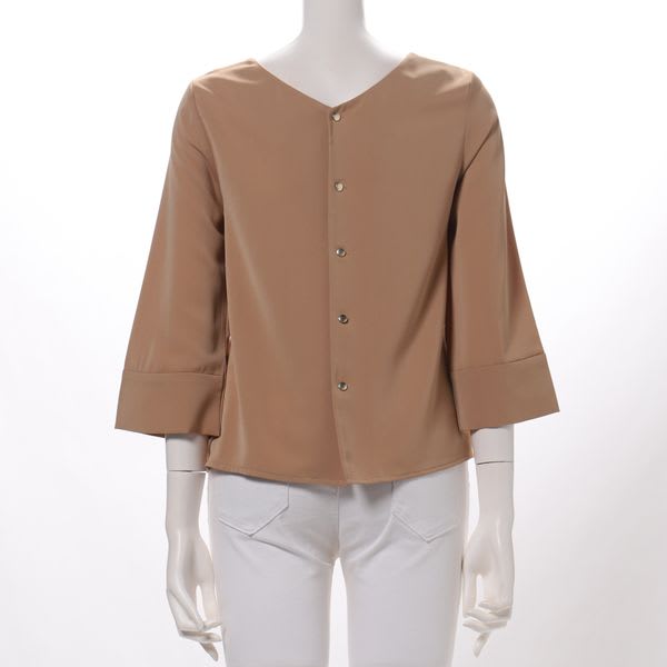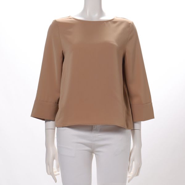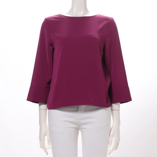 「色も素材も好きでしたが首が詰まっているデザインなので胸がつっぱってしまい前があがってうまく着れませんでした。肩はきれいでした。」