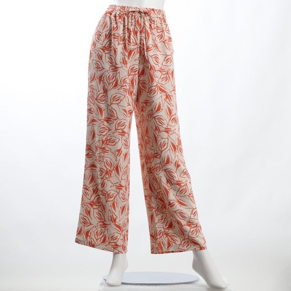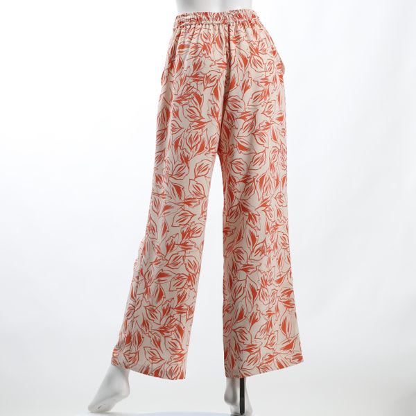 大柄プリントのドロストパンツです。チュニック丈のバンドカラーシャツを合わせてスタイリッシュに、オーバーサイズのTシャツに合わせてラフな感じも良いですね。