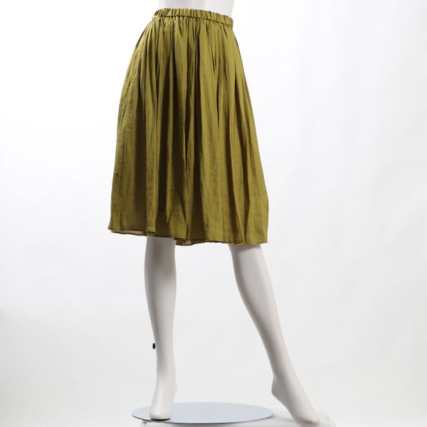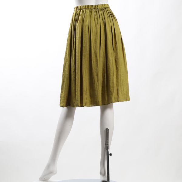 ヴィンテージサテン素材のギャザーフレアスカートです。スタンドカラーブラウスとパンプスを合わせて上品なスタイルや、コットンカットソーとスニーカーを合わせてカジュアルなスタイルも素敵ですよ。