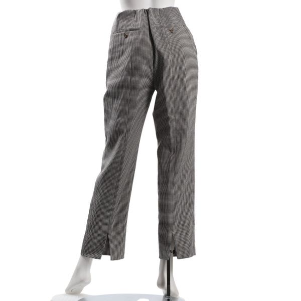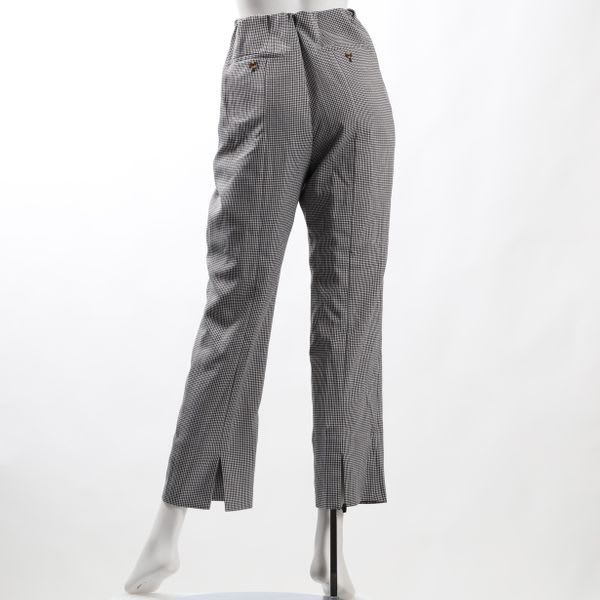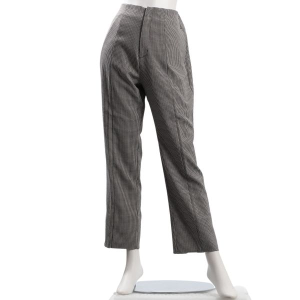 バックゴムとジップアップで履きやすい千鳥柄パンツ。バックスリット入りでヒールパンプスやブーティなども合わせやすいですよ。ボウタイブラウスを合わせてきれいめに、ベーシックなニットを合わせてカジュアルに着てもいいですね。(ポケット有り)