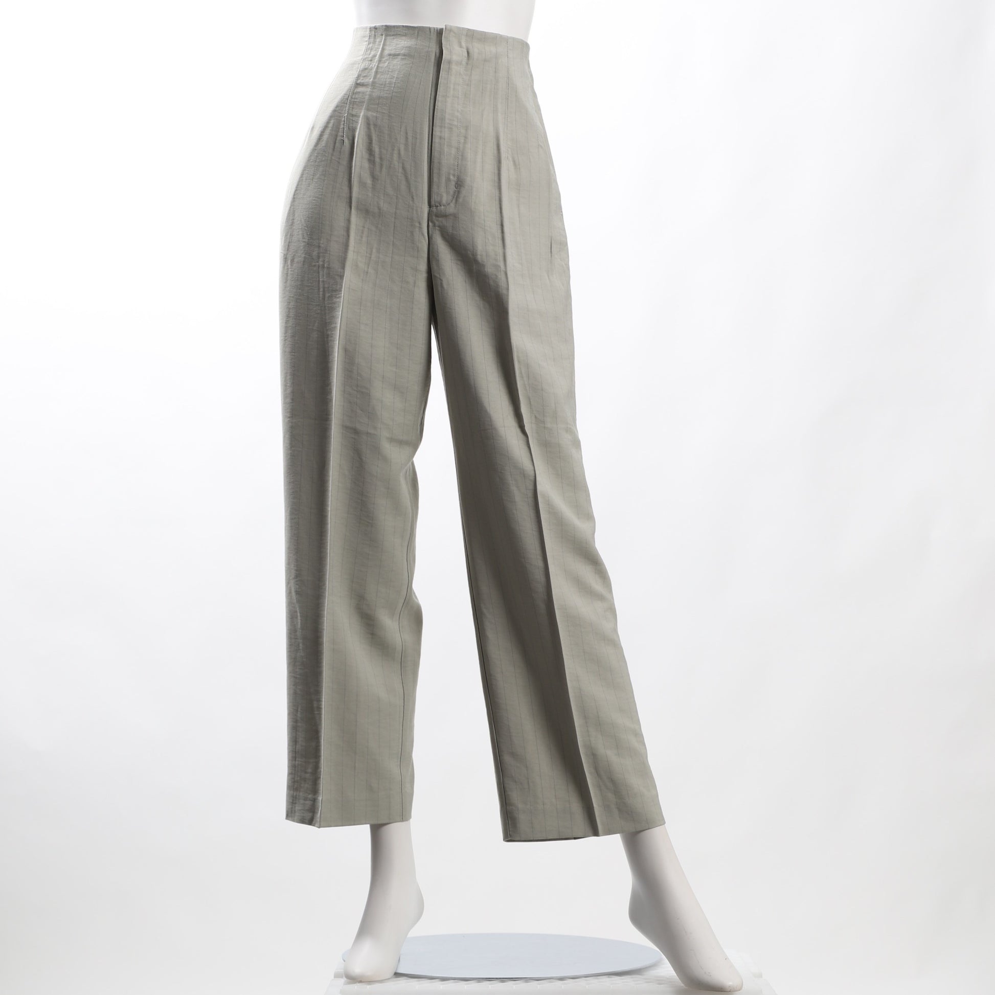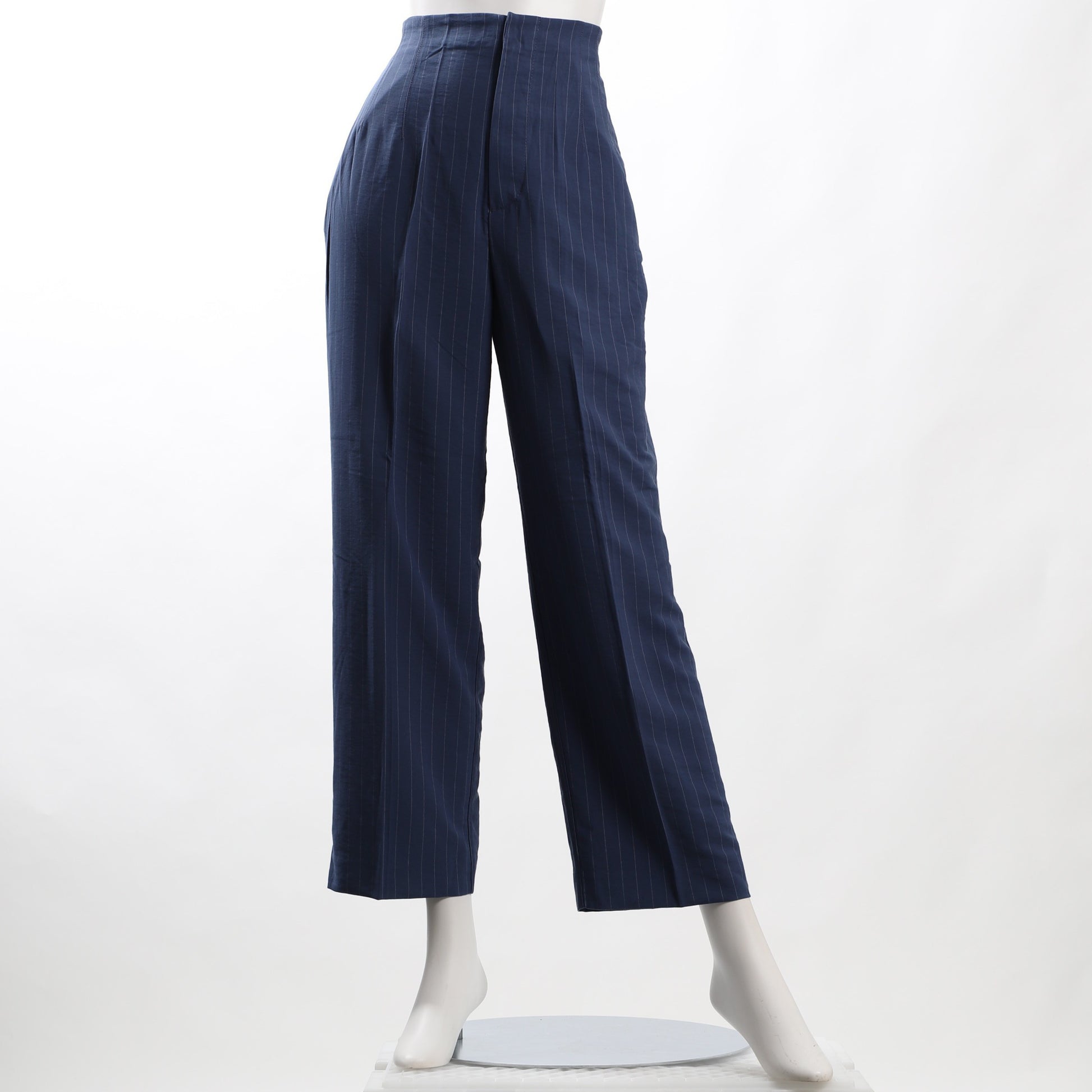 スッキリとしたシルエットのストライプ柄パンツです。襟付きシャツにパンプスできちんと感のある着こなしに。カットソーにスニーカーでカジュアルな印象も素敵ですよ。