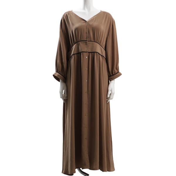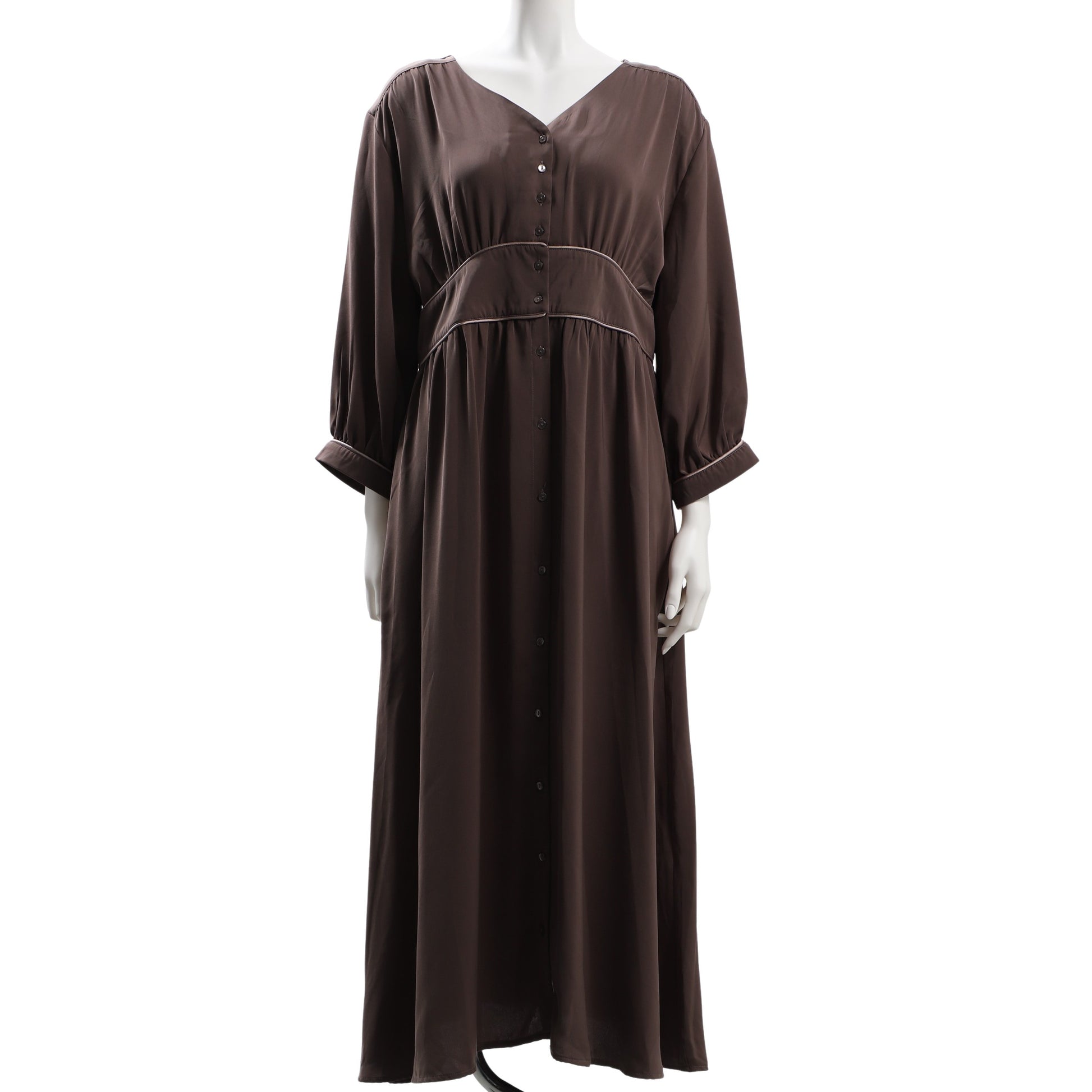 ウエスト部分やお袖口のパイピングデザインがポイントの前開きワンピースです。