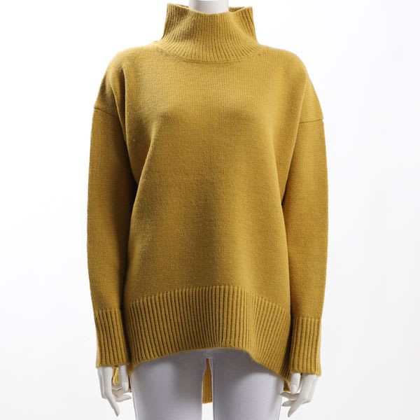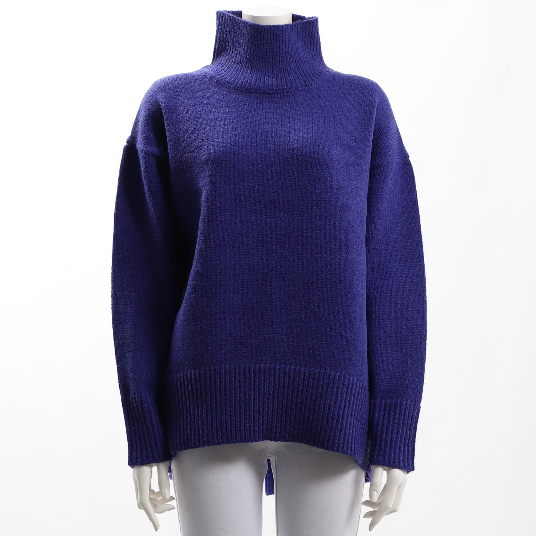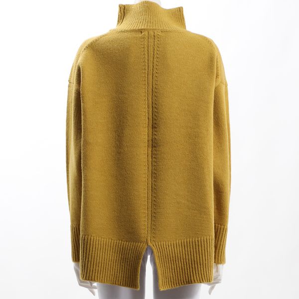 ハイネックのバックスリットニット。フレアスカートとバレエシューズを合わせて女性らしい着こなしに、デニムパンツとスニーカーを合わせてカジュアルな着こなしもおすすめです。