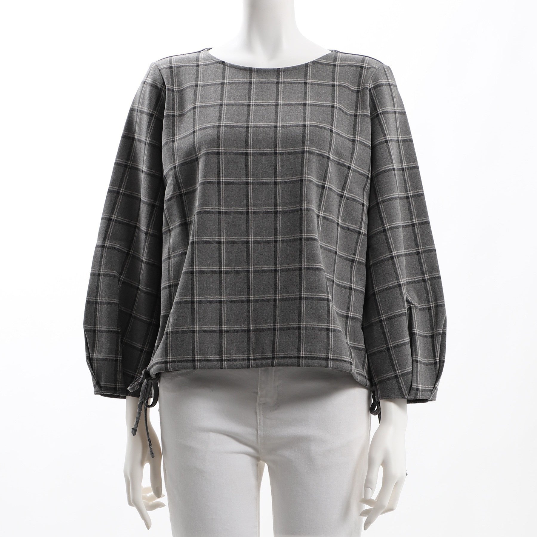 裾サイドの結びデザインがポイントのチェック柄カットソーです。ワイドパンツを合わせてラフな着こなしに、タイトスカートを合わせてレディライクな着こなしも素敵ですよ。
