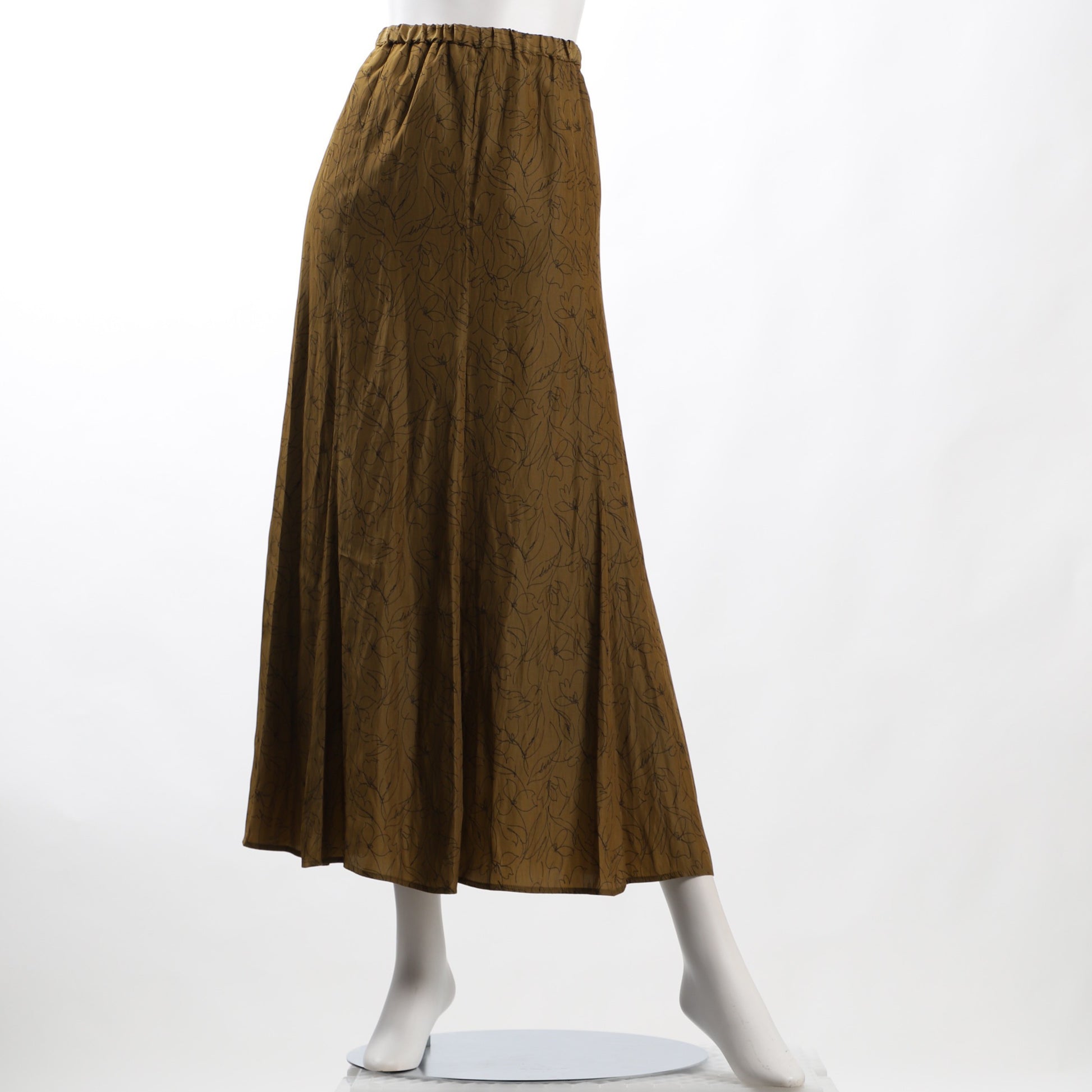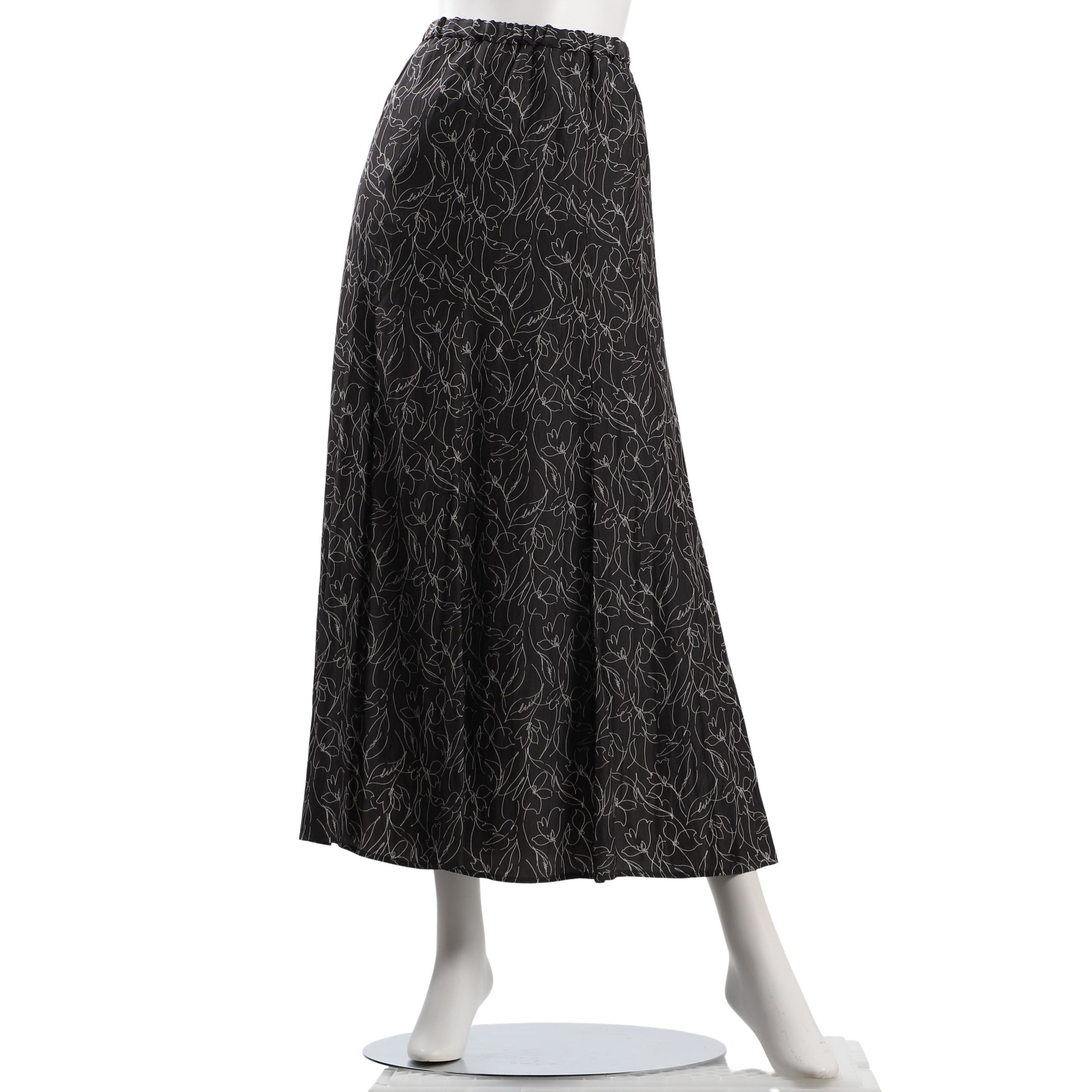 線画風柄のウエストゴムのナローフレアスカートです。カットソーを合わせてカジュアルスタイルに、とろみ素材のブラウスを合わせてフェミニンスタイルもいいですね。