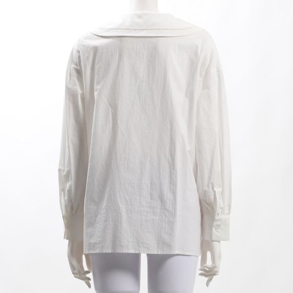 「とても可愛くて届いた瞬間からテンション上がりました。白なので手持ち服にも合わせやすかったです。」 「リクエストに応えていただき、ありがとうございます。丈感ちょうど良かったです。身幅はこのデザインだともう少しオーバーサイズの方がより好みかなと思いました。」 「大きな襟に初め怯みました…がジーンズと合わせると以外に着れて、周りからも好評でした。お洒落なデザインのシャツに興味出ました。」 「大きめの襟のブラウスにチャレンジしてみたかったのでよかったです!白のブラウスは好きなアイテムです。特に春は毎年違ったデザインのものが着たくなります。」 「襟が大きくて可愛かったです!白なので合わせやすくてよかったです。」