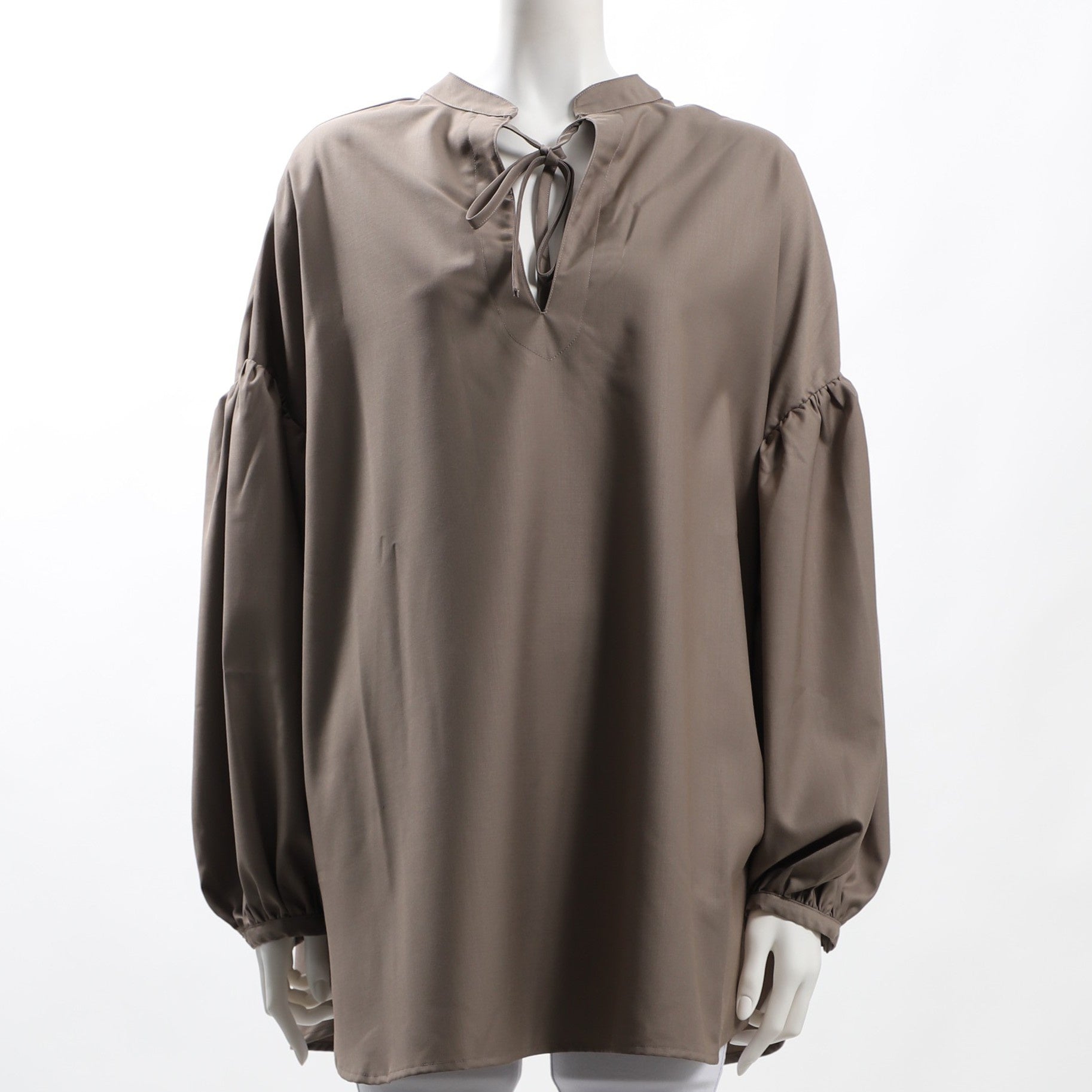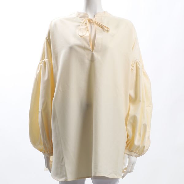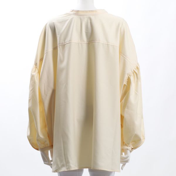 前後2WAYで使える、ドロップショルダーのパフスリーブブラウス。インナーには、キャミソールやタンクトップ、バレエネックカットソーなど襟ぐりが深めのものを着ていただくといいですね。ボトムスにはデニムパンツを合わせてカジュアルに、プリーツスカートでフェミニンにまとめてもステキです。