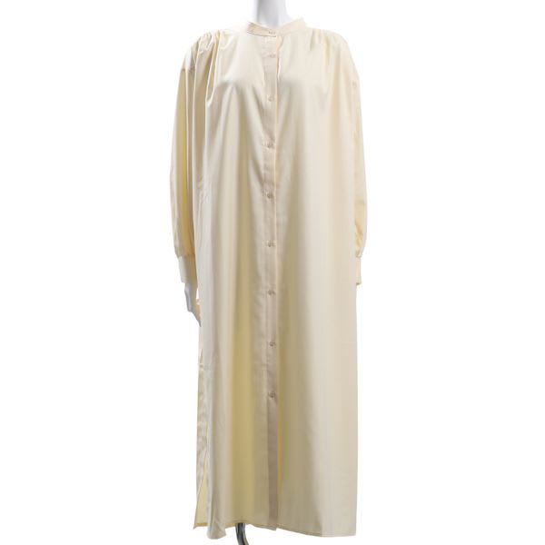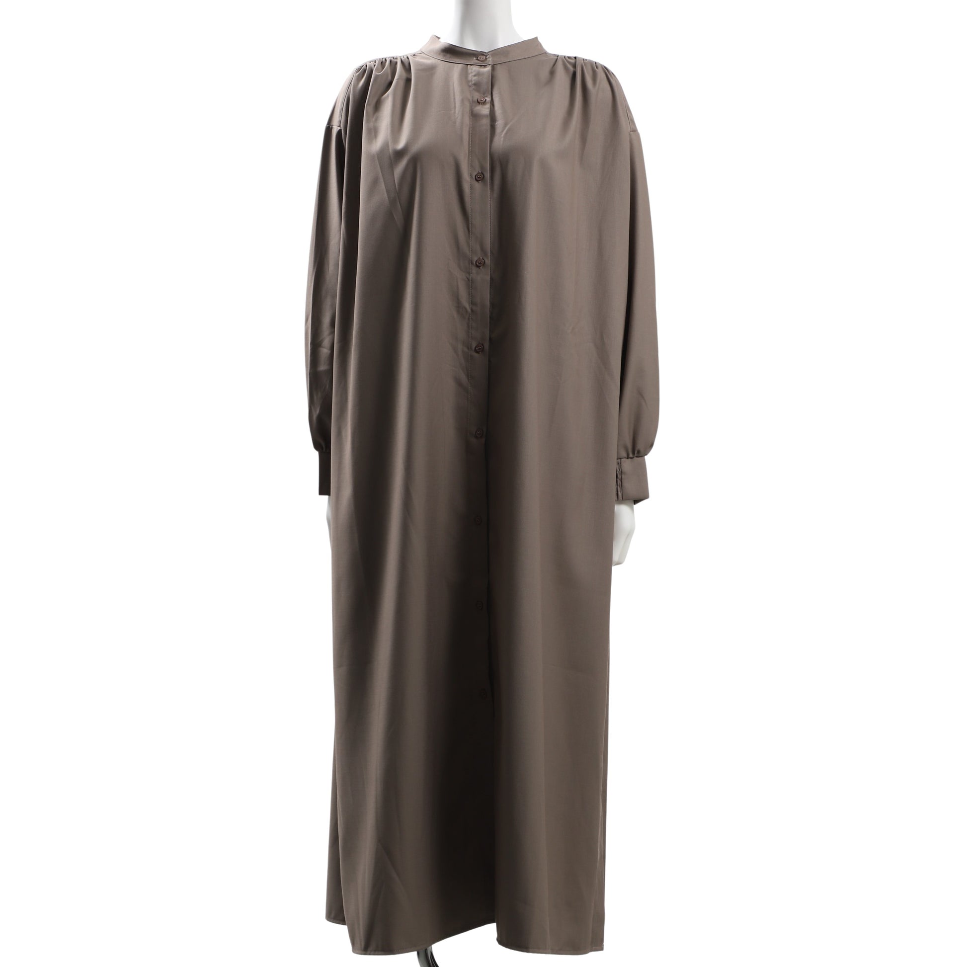 ボタンデザインのバンドカラーシャツ。一枚で合わせていただくのはもちろん、スキニーパンツやタイツなどをレイヤードしたスタイルも素敵ですよ。