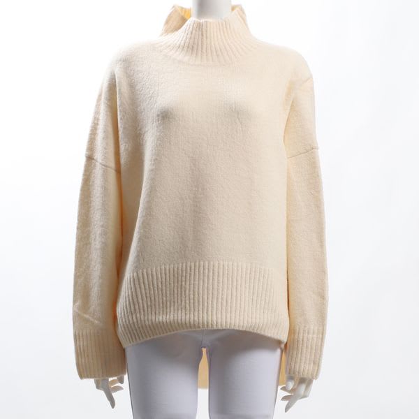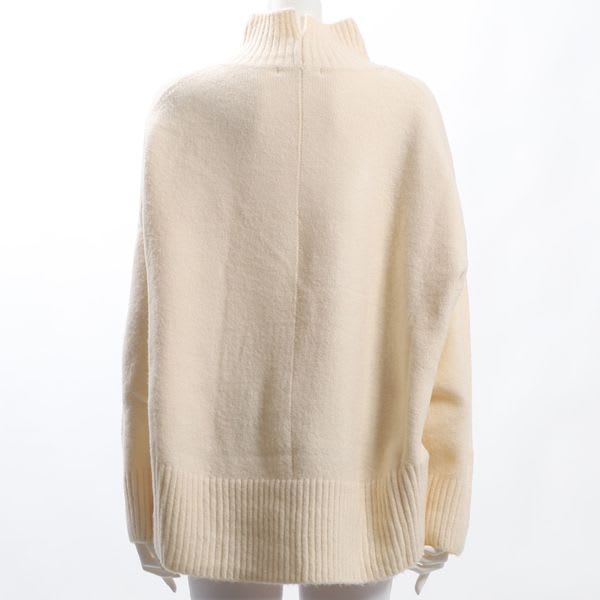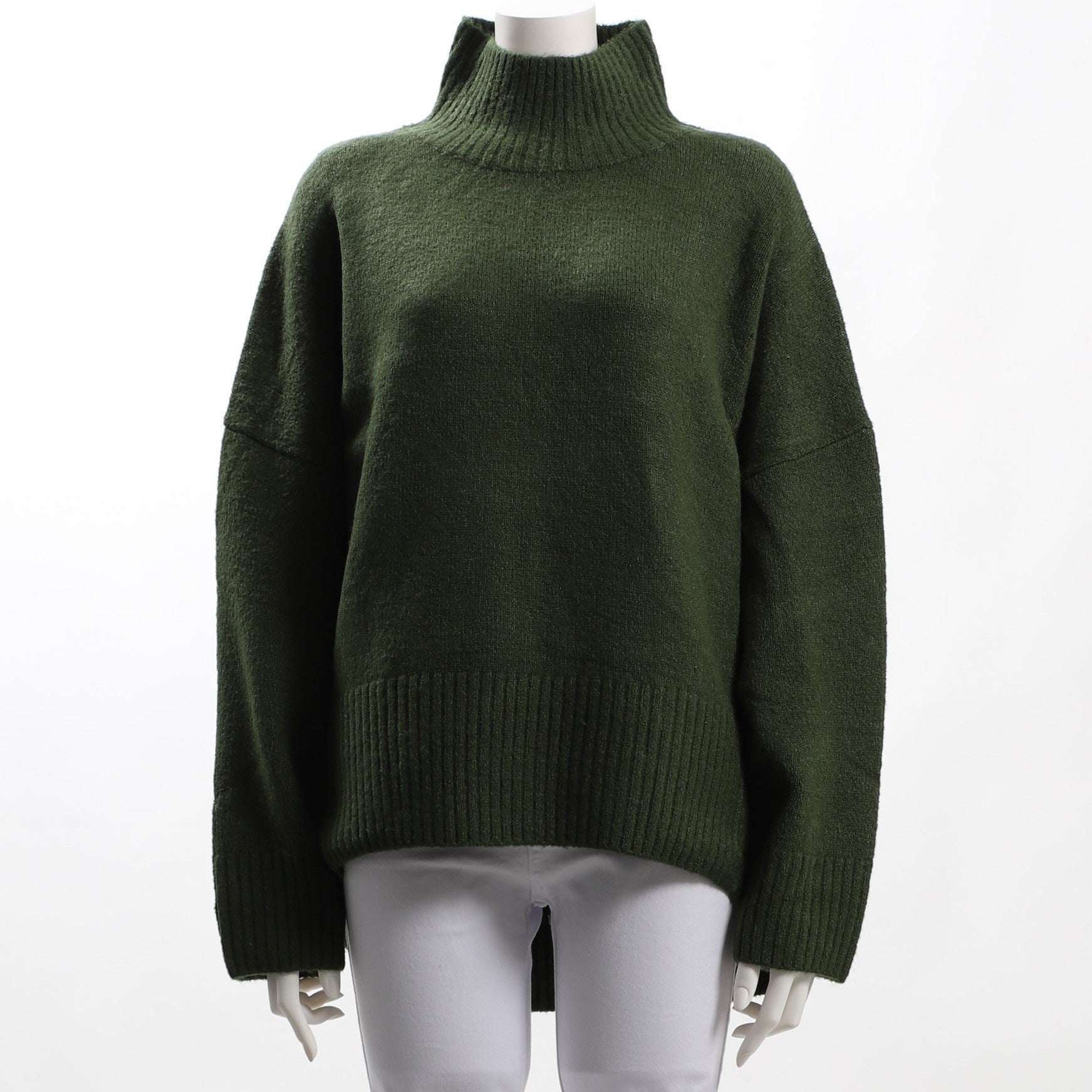 ゆったりとしたシルエットがリラクシーなハイネックニットです。プリーツスカートを合わせて、女性らしい着こなしに。デニムパンツを合わせて、カジュアルにまとめても◎