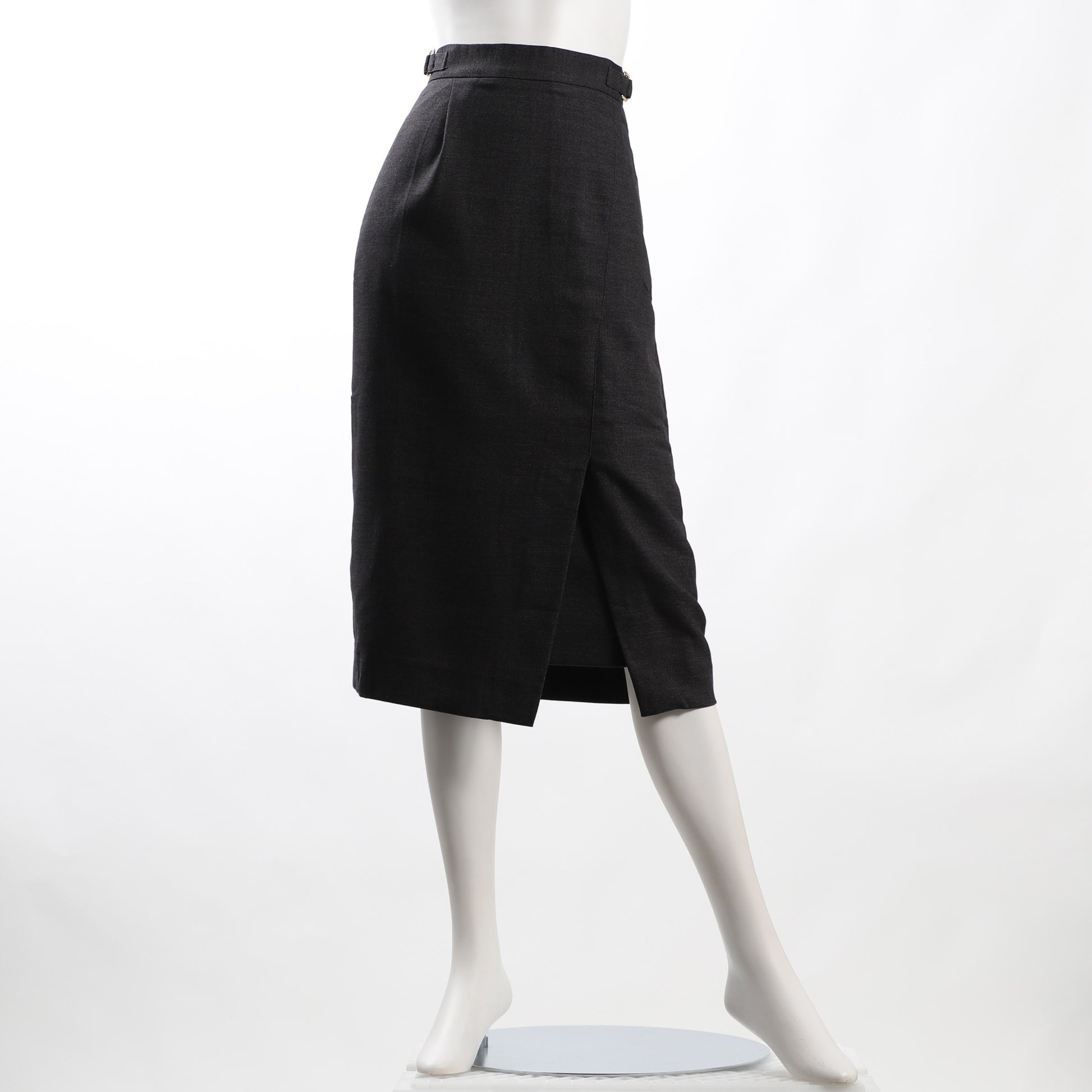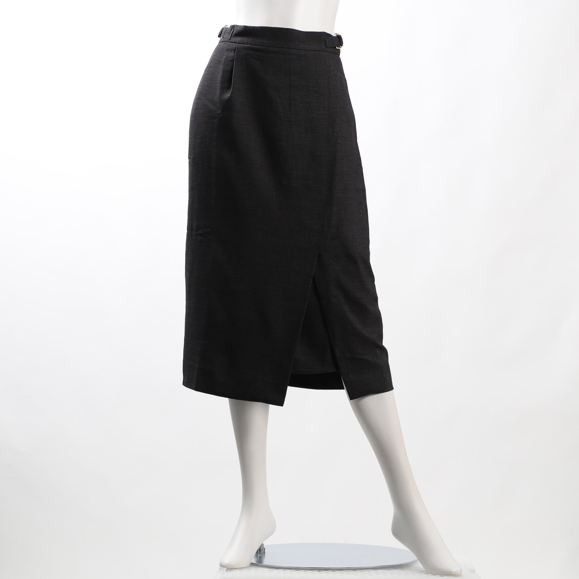 コーディネートにアクセントを加えてくれるラップ風スカートです!ウエスト両サイドのDカンデザインが脚長効果を高めてくれますね。