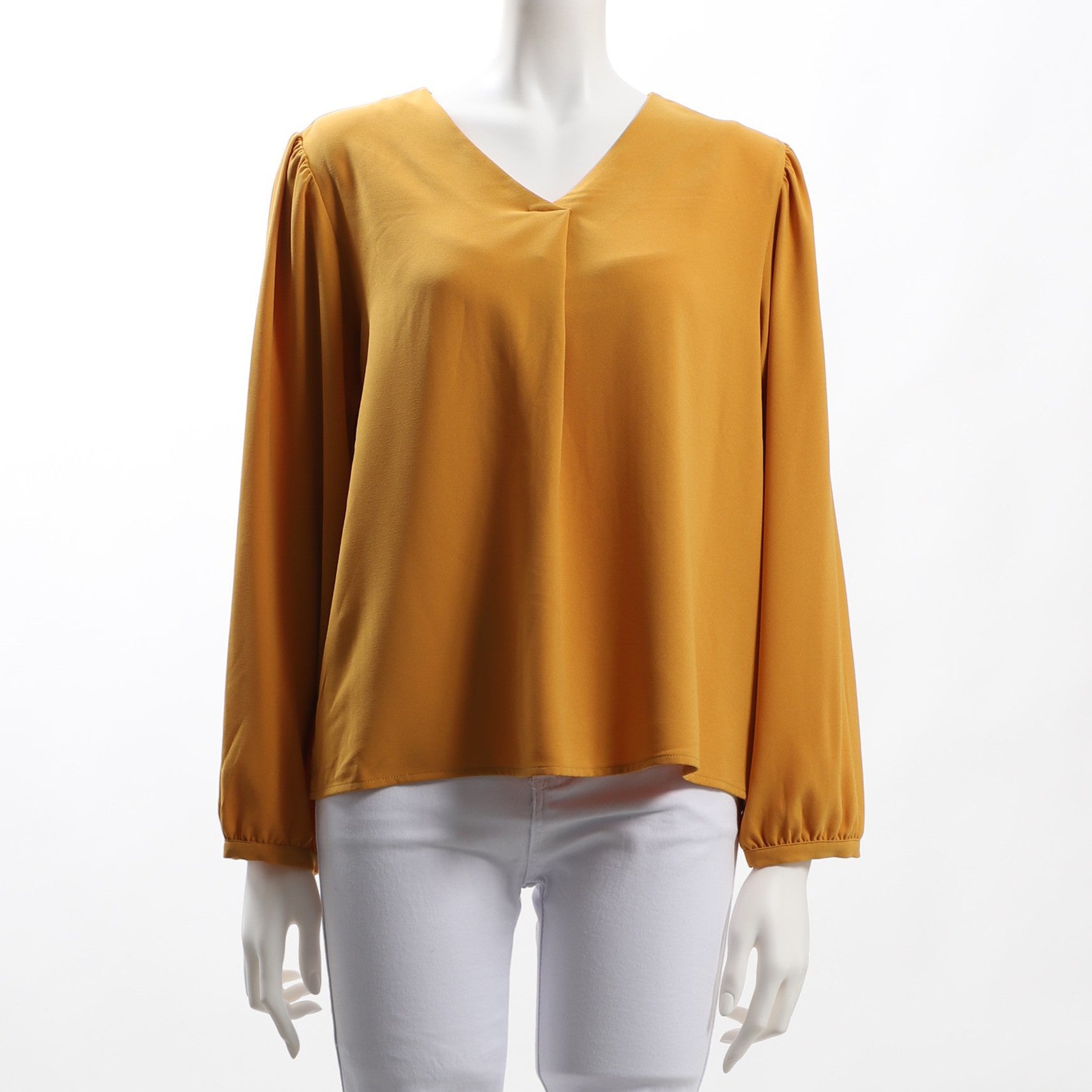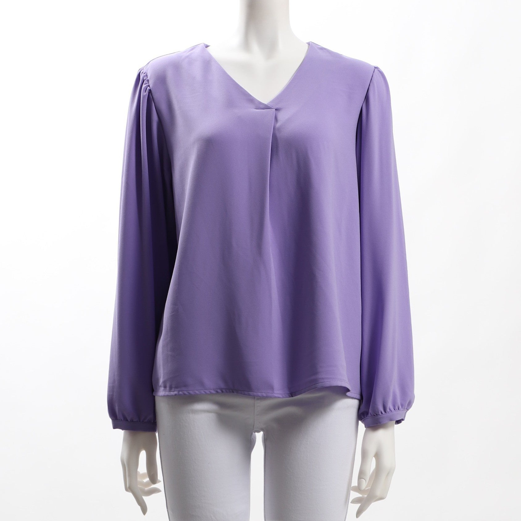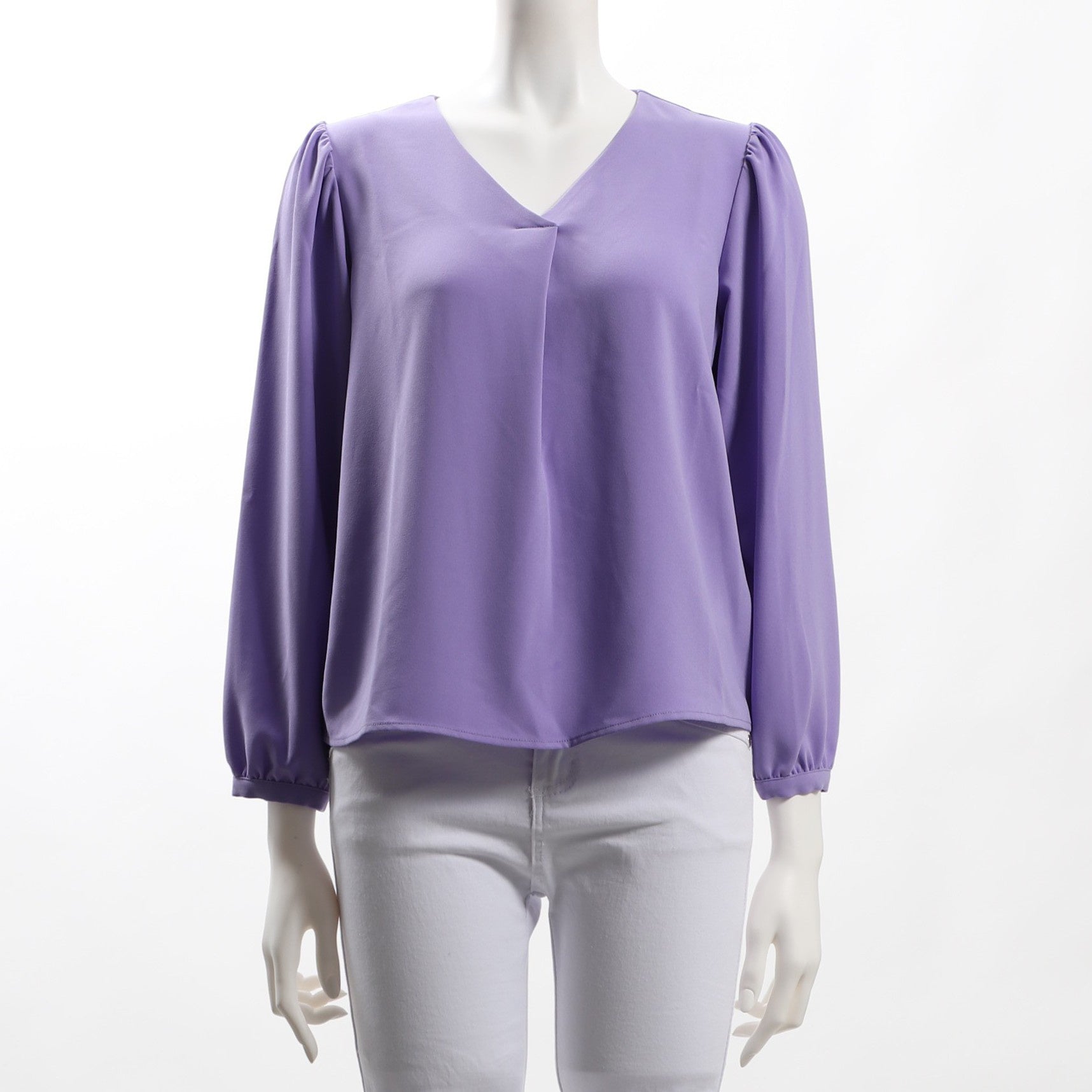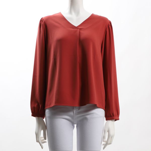 パフスリーブデザインのVネックブラウスです。フレアスカートを合わせてフェミニンスタイルに、テーパードパンツを合わせてスマートなスタイルも素敵ですよ。