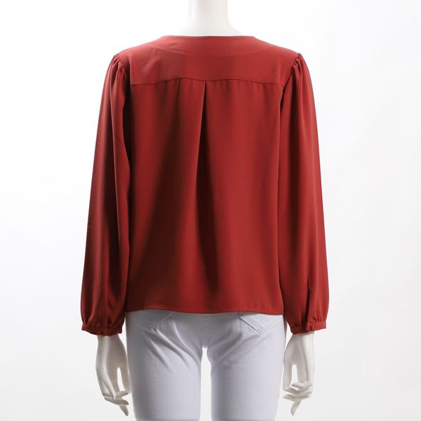 パフスリーブVネックブラウス