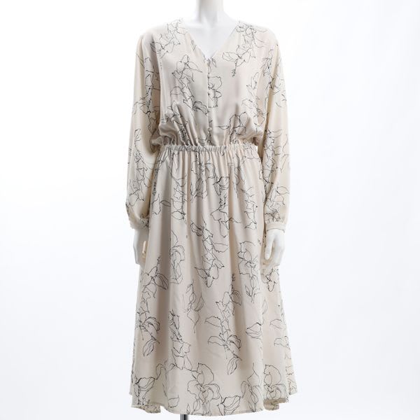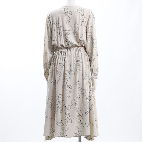 Vネック線画フラワーワンピース