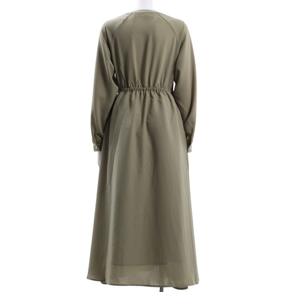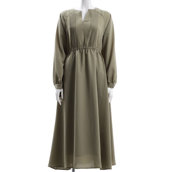 フロントのピンタックがポイントのワンピース。レザーのトートバッグとヒールパンプスを合わせて綺麗めなスタイルに、ショルダーバッグとフラットシューズで休日のお出かけにもいいですね。