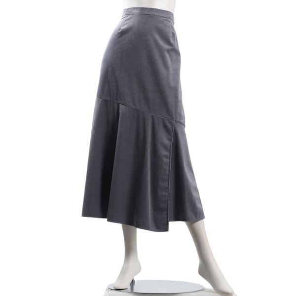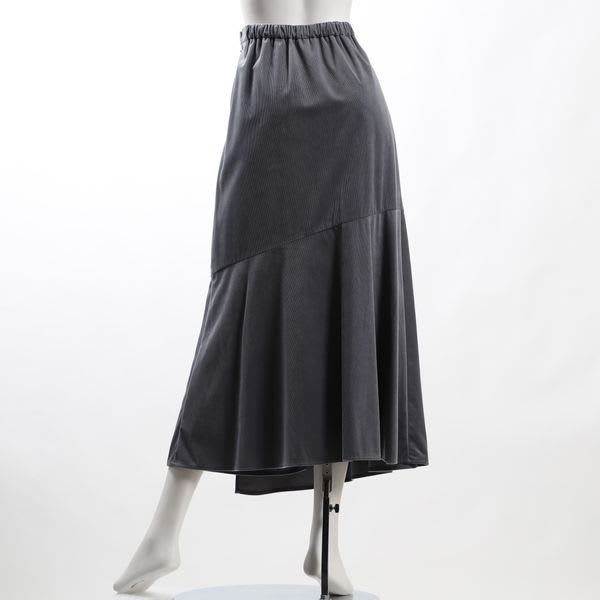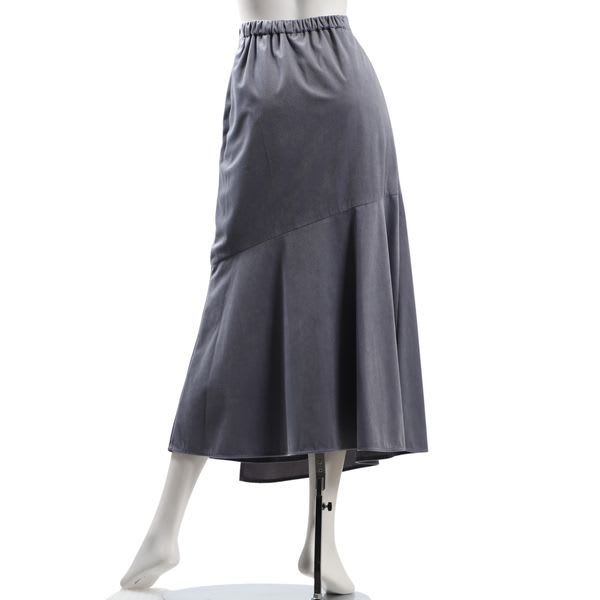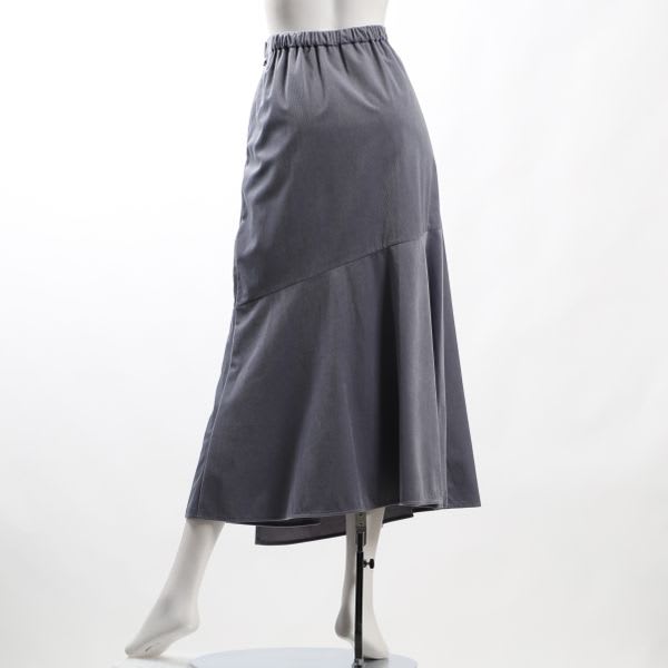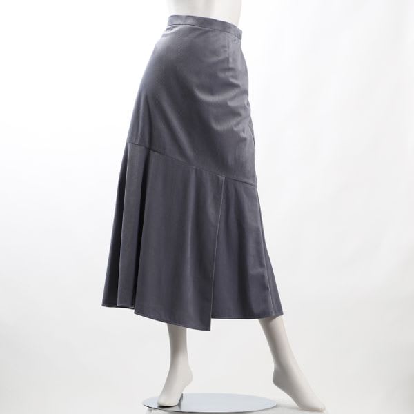 斜めの切り替えが特徴的なアシンメトリーのスカート。パフスリーブブラウスを合わせてきれいめな着こなしに、リブカットソーを合わせてカジュアルめに着るのも素敵です。