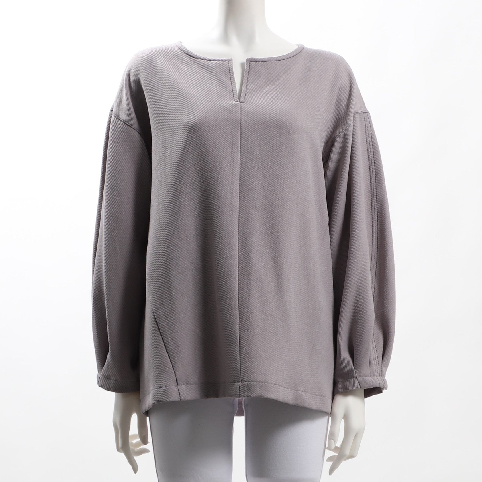袖口にタックが入ったオープンフロントネックブラウスです。フレアスカートを合わせて、女性らしい印象に。デニムパンツを合わせて、カジュアルな着こなしも◎