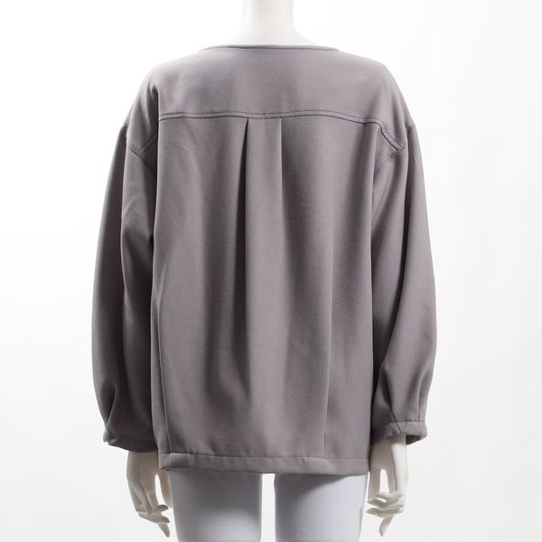 袖口にタックが入ったオープンフロントネックブラウスです。フレアスカートを合わせて、女性らしい印象に。デニムパンツを合わせて、カジュアルな着こなしも◎
