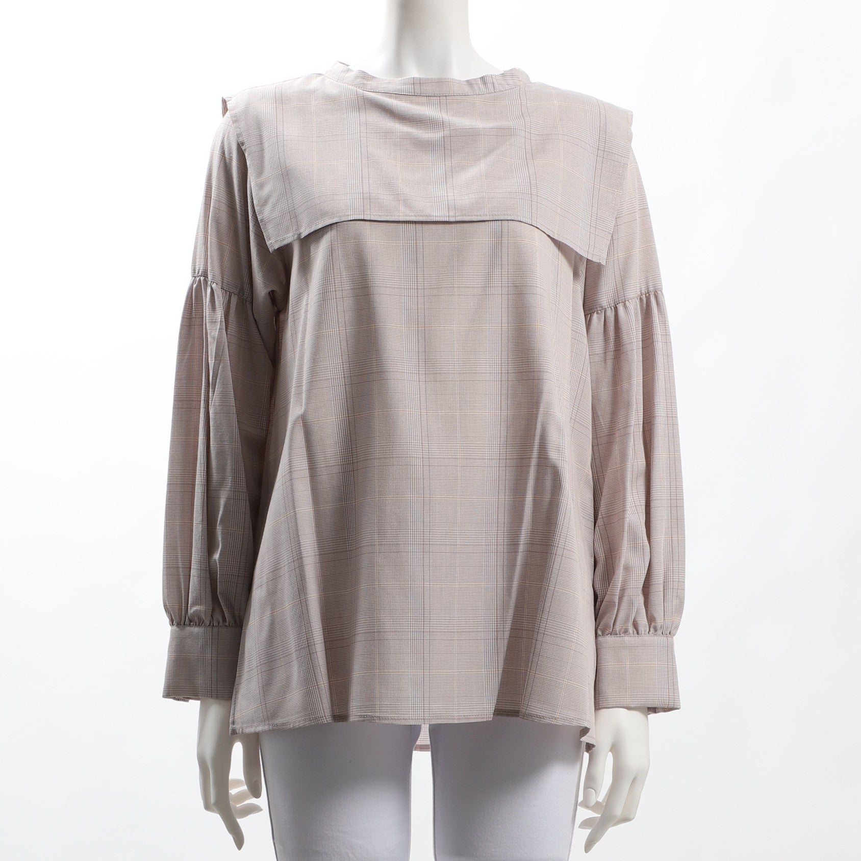 スクエア型のビッグカラーが目を引くチェック柄ブラウスです。タイトスカートにローファーでクラシカルな雰囲気に。デニムパンツにスニーカーでカジュアルな印象も素敵ですよ。