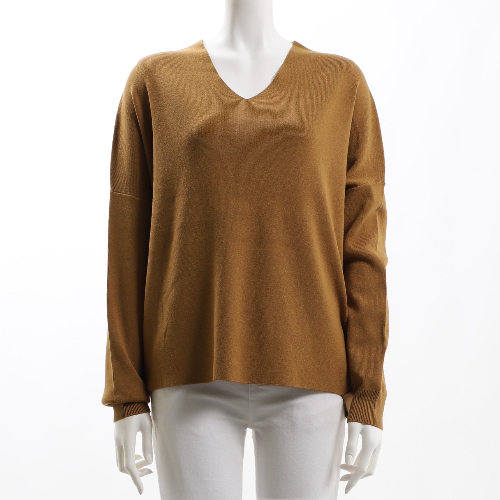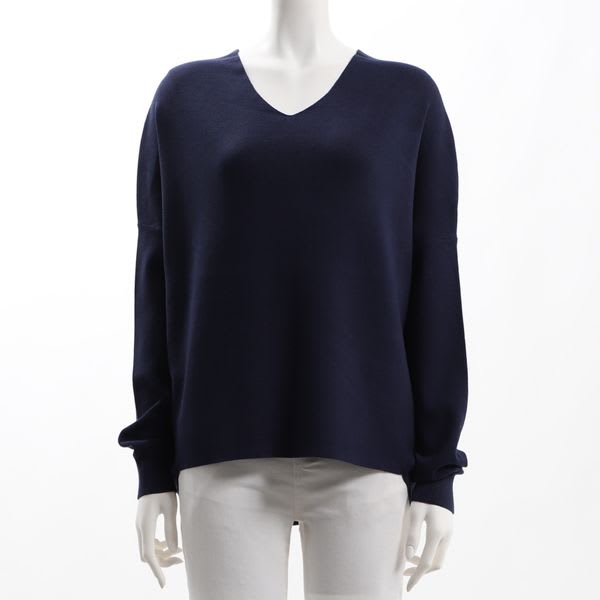 Vネックのドロップショルダーニット。タイトスカートに合わせて女性らしい着こなしに、デニムパンツに合わせてラフな着こなしもおすすめですよ!
