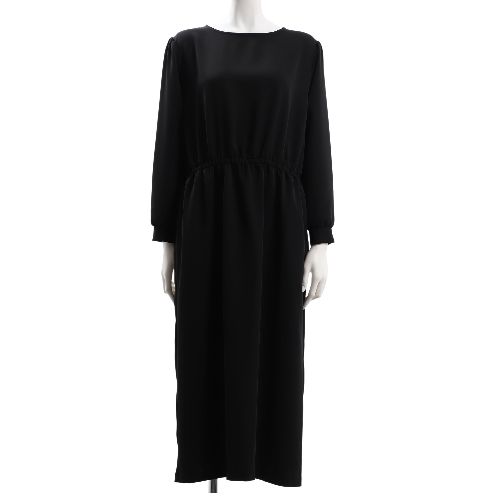 シンプルなシルエットのウエストゴムワンピースです。ラウンドバッグとバレエシューズで女性らしい着こなしに。ショルダーバッグとスニーカーで休日のキレイめカジュアルな着こなしもいいですね。
