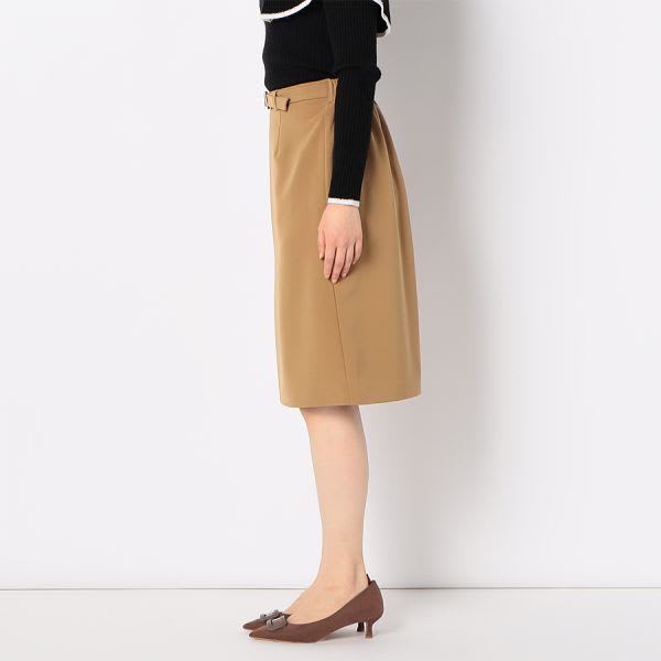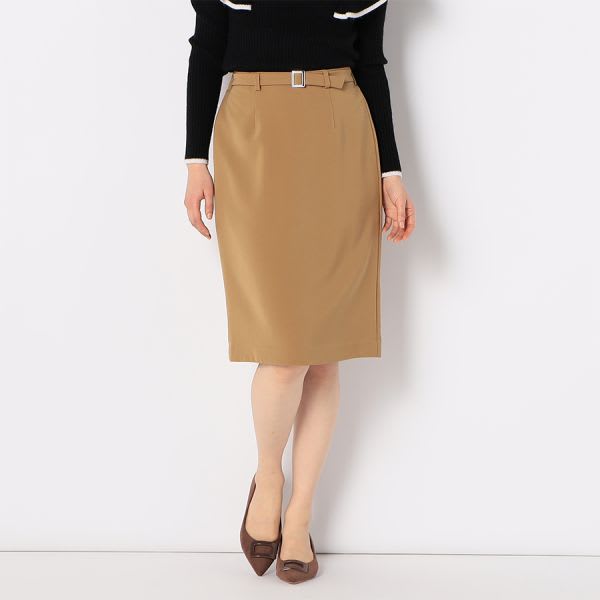 ウエストベルト付きのセミタイトスカートです。とろみブラウスにパンプスできちんと感のある着こなしに。カットソーにスニーカーでキレイめカジュアルなスタイルも◎