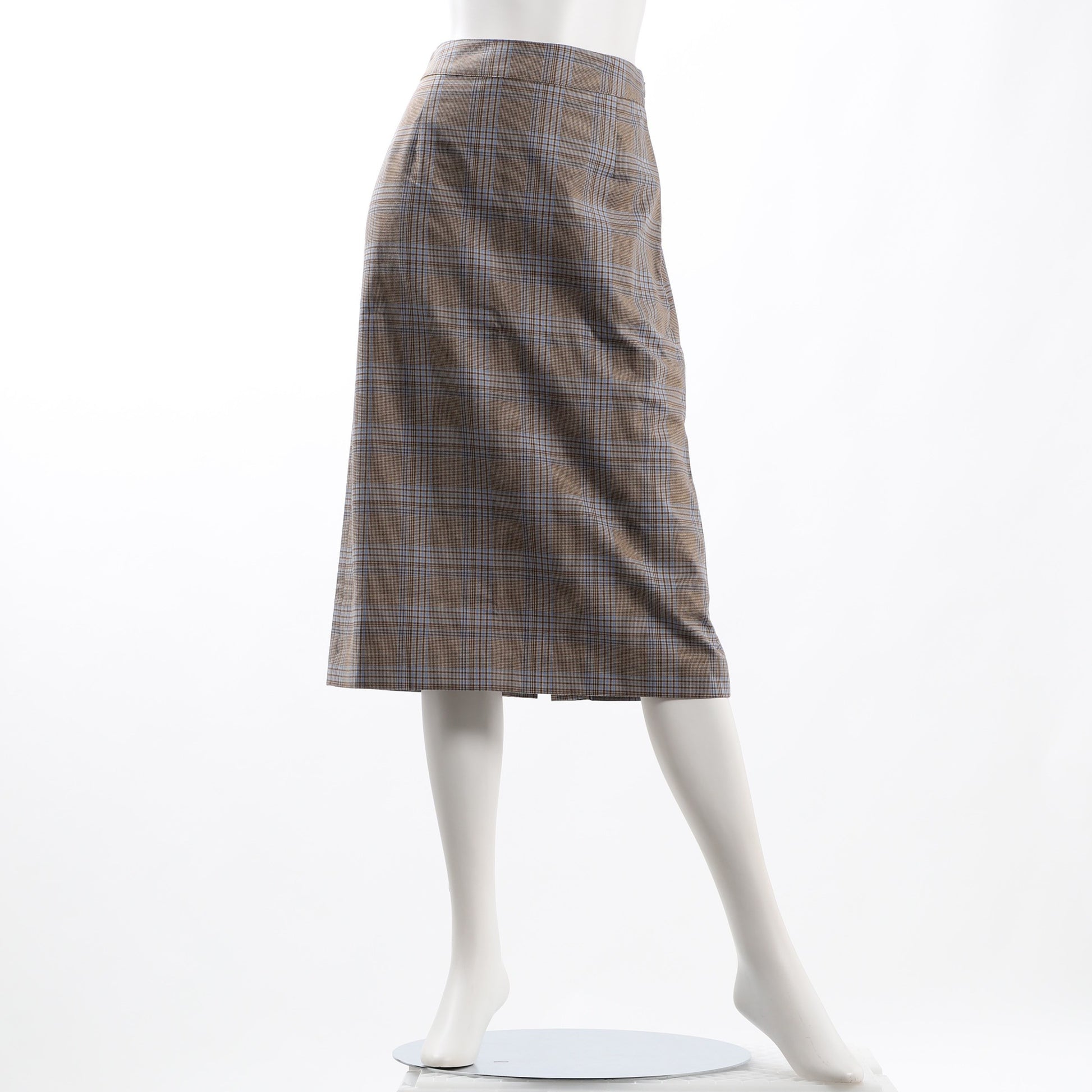 チェック柄のセミタイトスカート。ボウタイブラウスとヒールパンプスを合わせて女性らしいスタイルに、カットソーとスニーカーを合わせてカジュアルスタイルも素敵ですね!