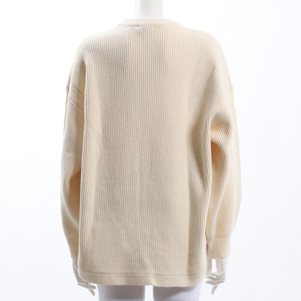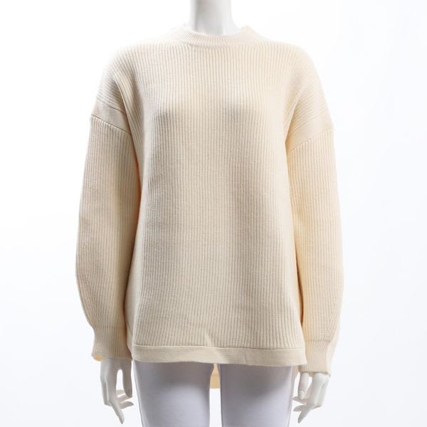 バックテールデザインのクルーネックニット。デニムパンツとスニーカーを合わせてカジュアルに、ペンシルスカートとパンプスで女性らしくまとめてもいいですね。