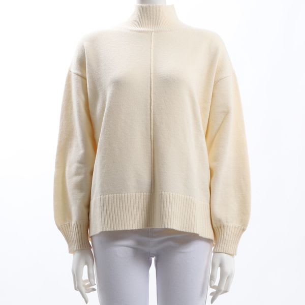 身頃のデザインとバックスリットが特徴的なニットです。プリーツスカートを合わせて、女性らしい着こなしに。デニムパンツを合わせて、カジュアルにまとめてもいいですね。