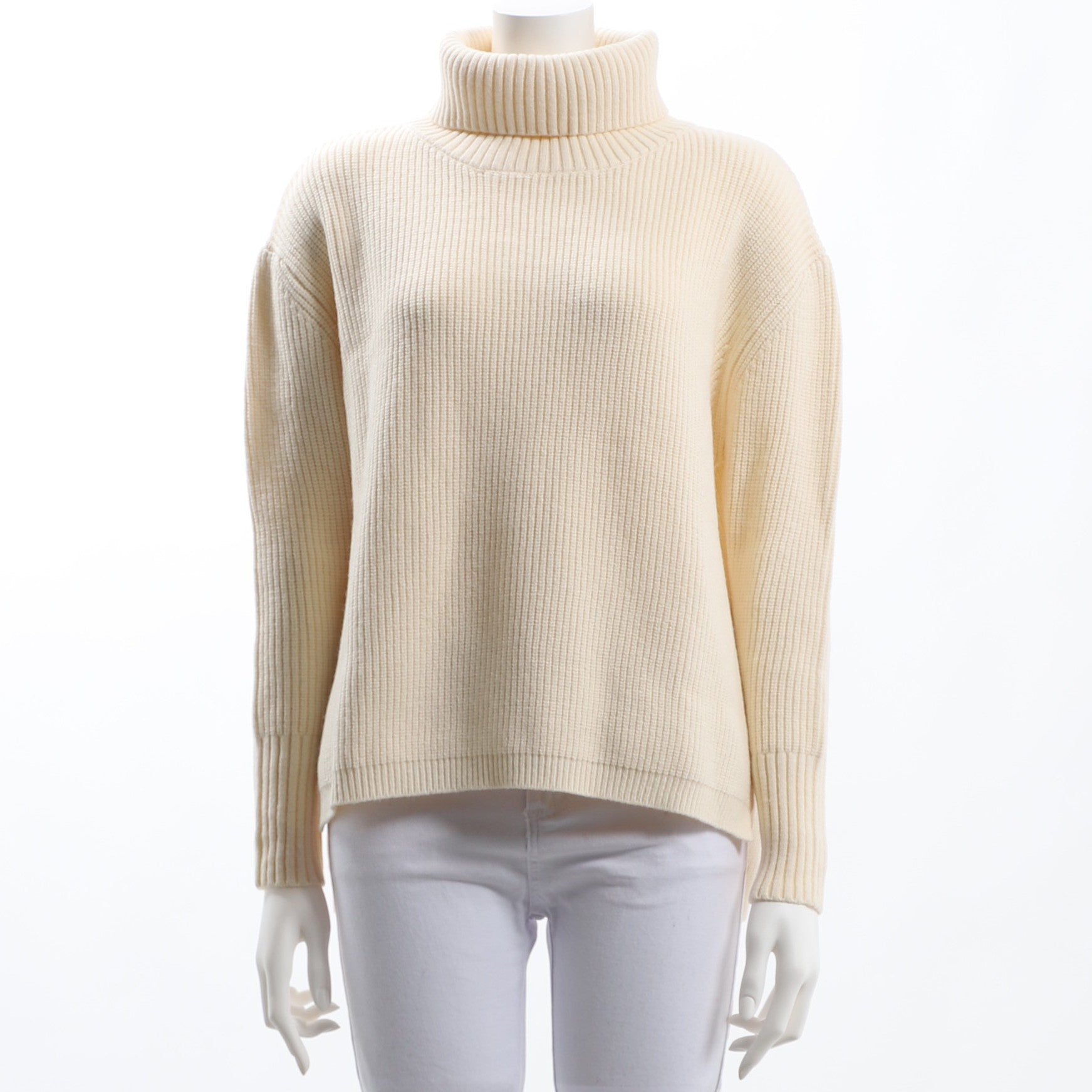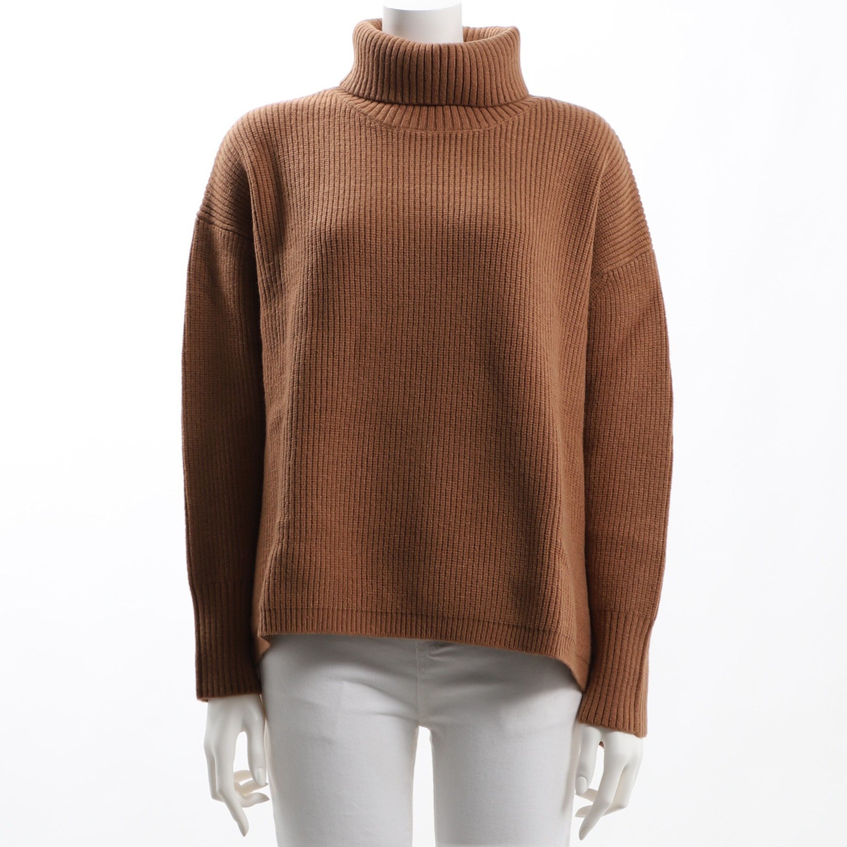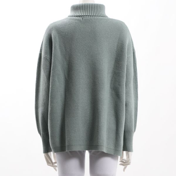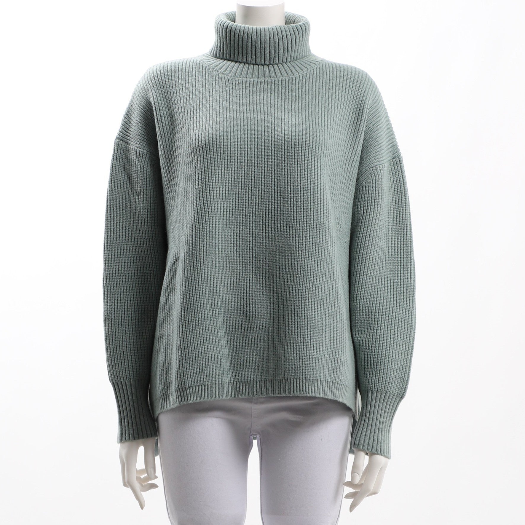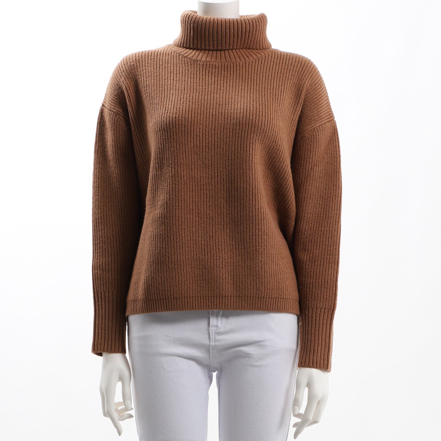 ドロップショルダーのミドルゲージタートルネックニット。プリーツスカートを合わせて女性らしい着こなしに、デニムパンツを合わせてマニッシュに着こなすのもいいですね。
