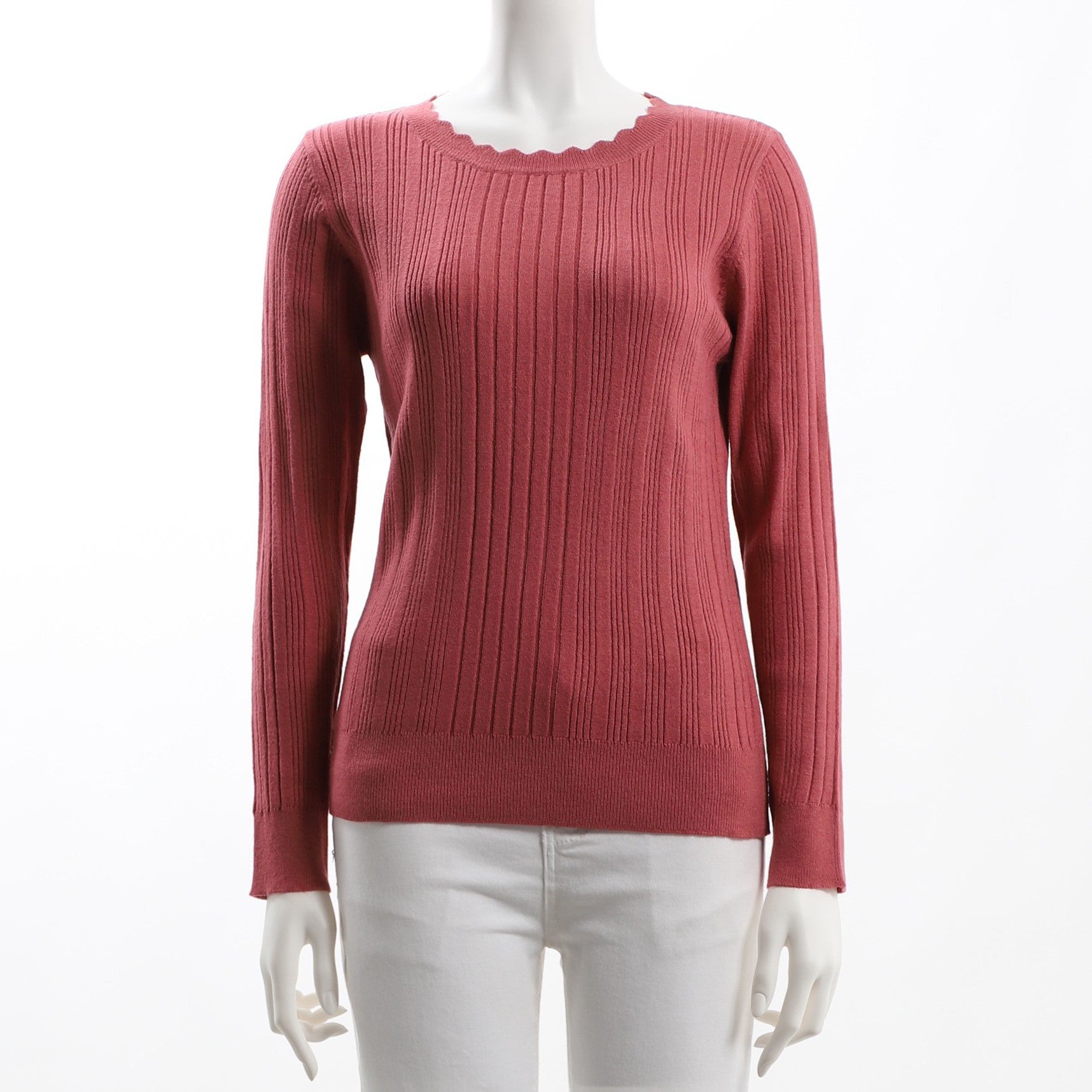 デザイン性のあるネック部分が特徴的なニットです。フレアスカートを合わせて、女性らしい着こなしに。デニムパンツを合わせて、カジュアルな印象もいいですね。